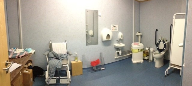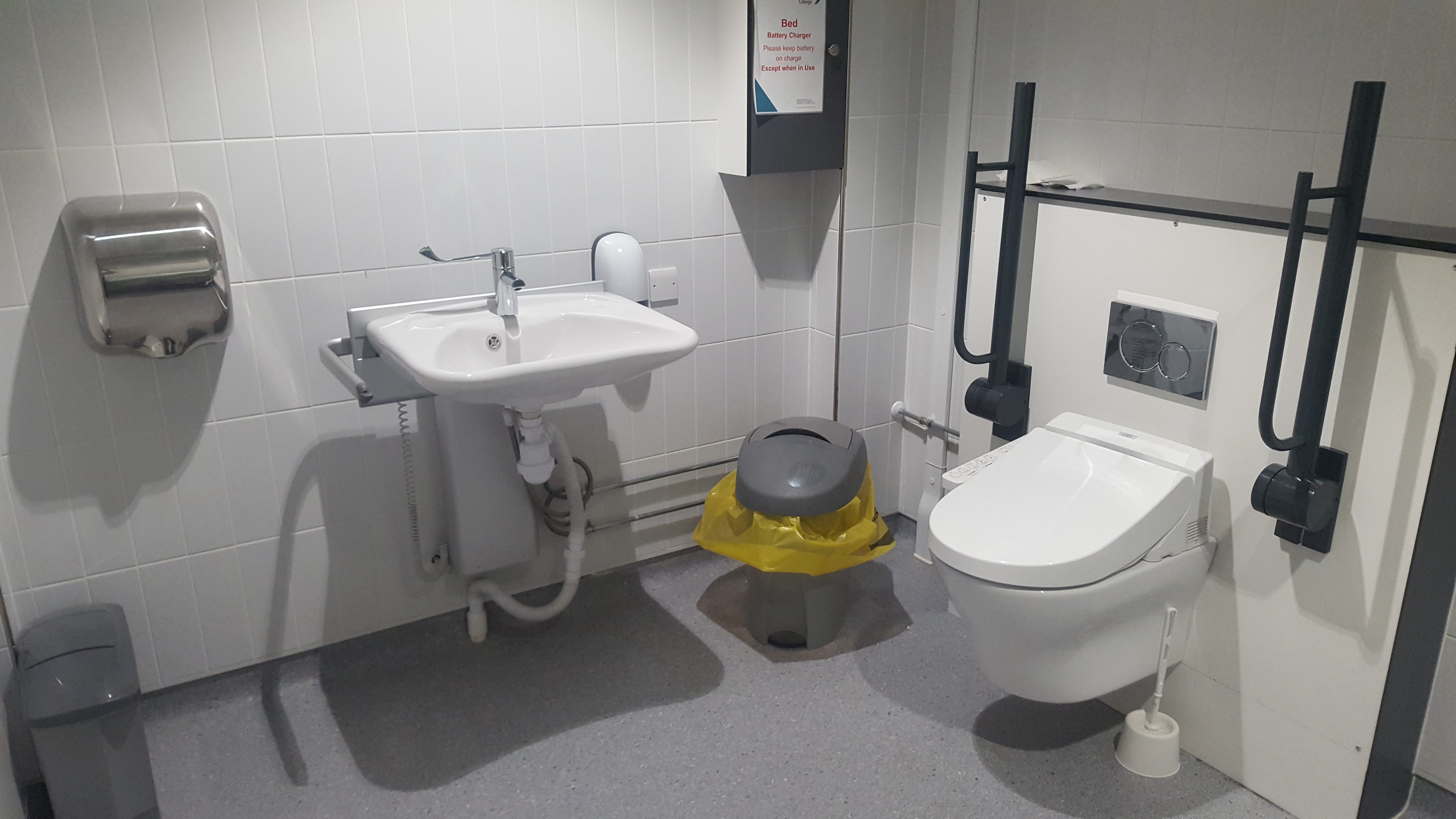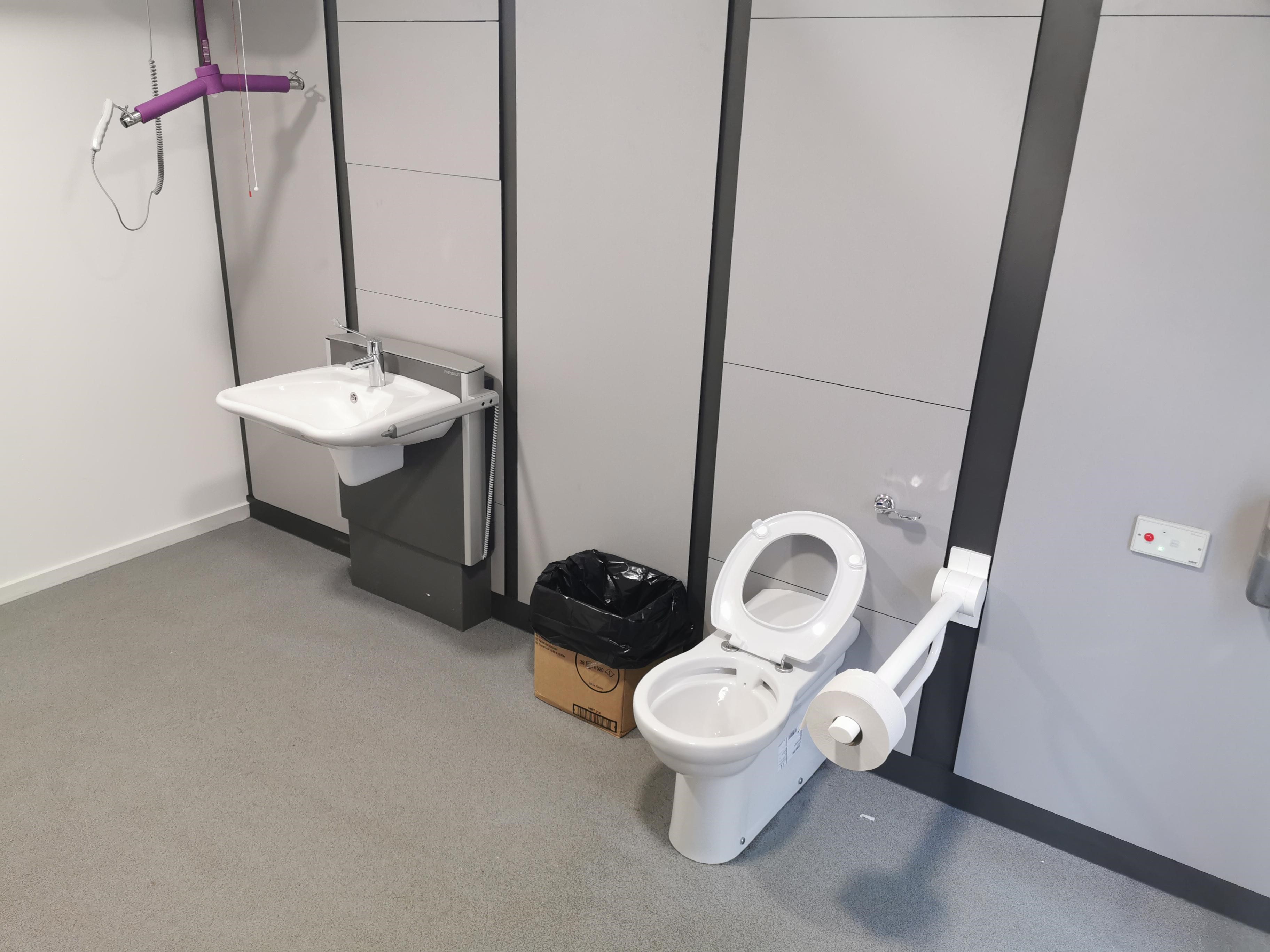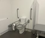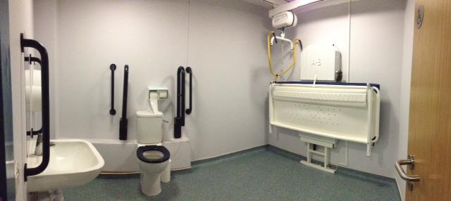 FACILITIES: Bench – Height Adjustable, Adult Sized, Free Standing | Hoist – Ceiling | Peninsular Toilet | Non-Slip Floor | Floor Space (sq. m) – 14 | Emergency Alarm | Privacy Screen | Paper Roll | Radar Key | Managed | Locked