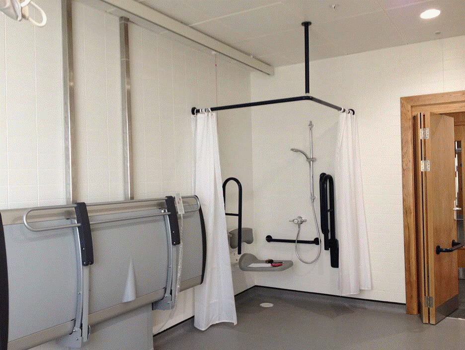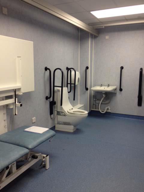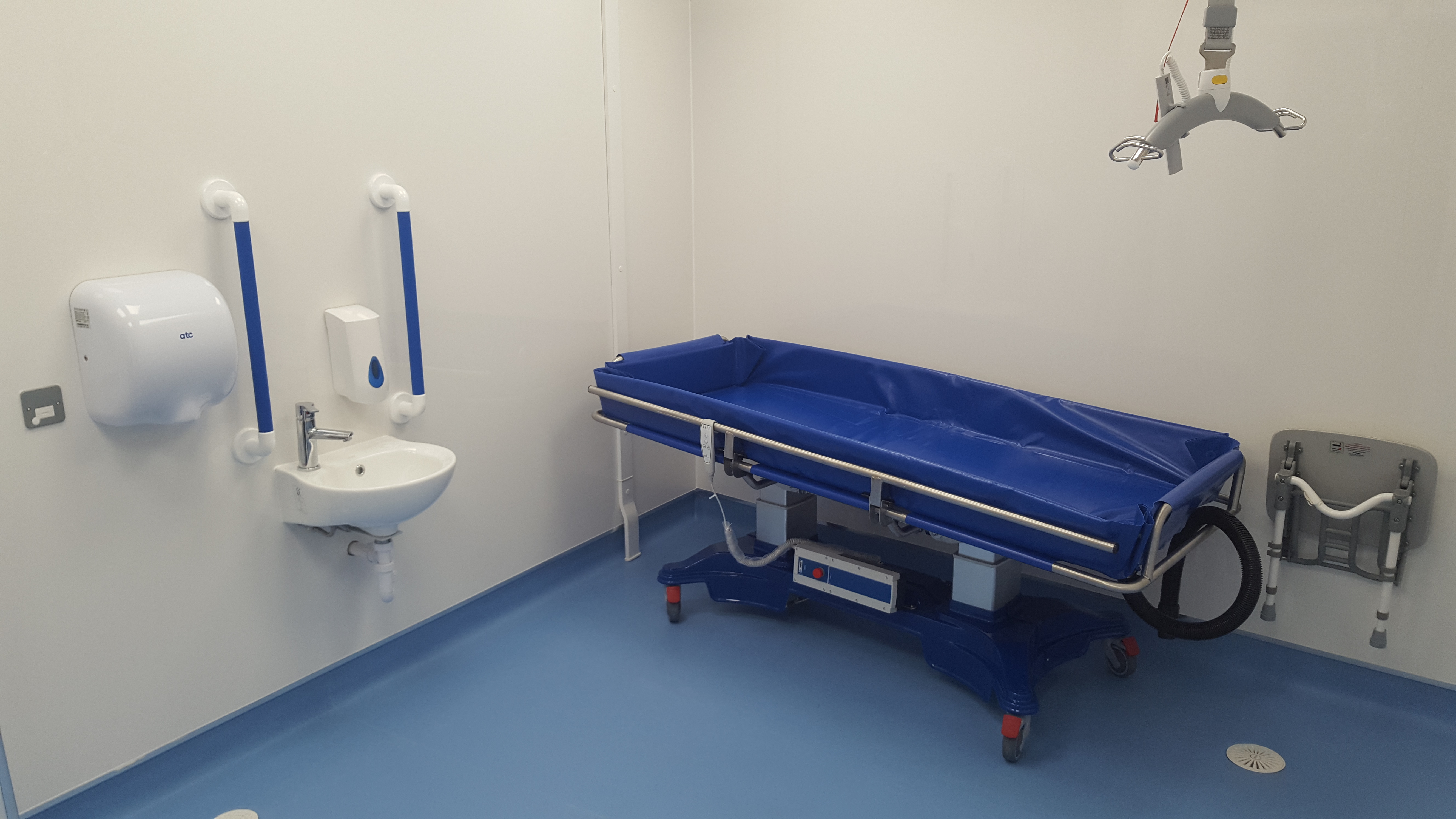 FACILITIES: Bench – Height Adjustable, Adult Sized, Free Standing | Hoist – Ceiling | Wash & Dry Toilet | Height Adjustable Washbasin | Non-Slip Floor | Floor Space (sq. m) – 12 | Emergency Alarm | Privacy Screen | Managed