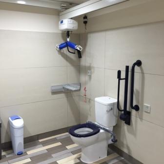 FACILITIES: Bench – Height Adjustable, Adult Sized, Wall Mounted | Hoist – Ceiling | Peninsular Toilet | Non-Slip Floor | Emergency Alarm | Privacy Screen | Paper Roll | Managed