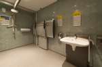 FACILITIES: Bench – Height Adjustable, Adult Sized, Free Standing | Hoist – Ceiling | Peninsular Toilet | Height Adjustable Washbasin | Non-Slip Floor | Floor Space (sq. m) – 11 | Emergency Alarm | Privacy Screen | Paper Roll Radar Key | Managed | Locked | Colostomy Shelf