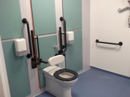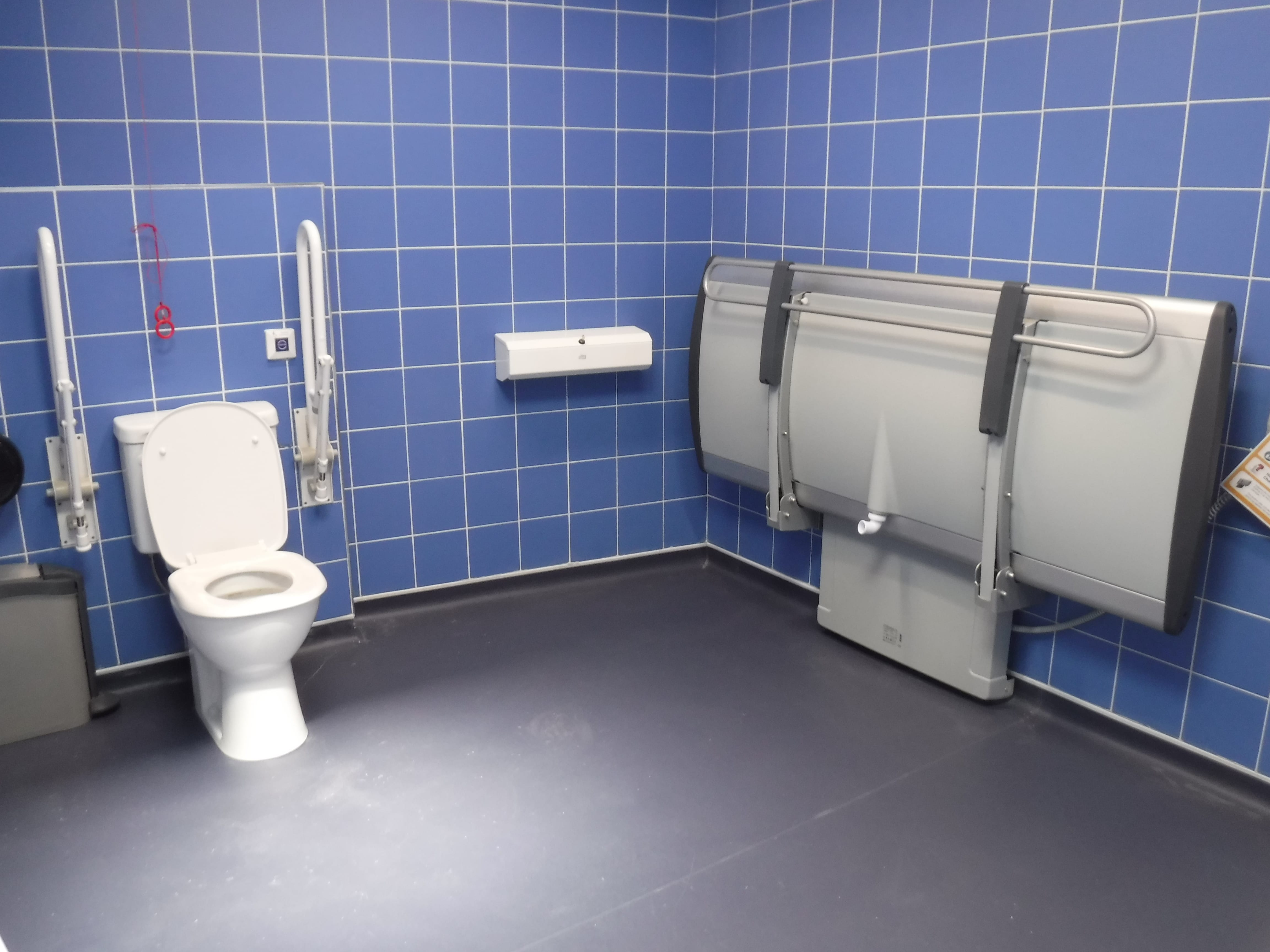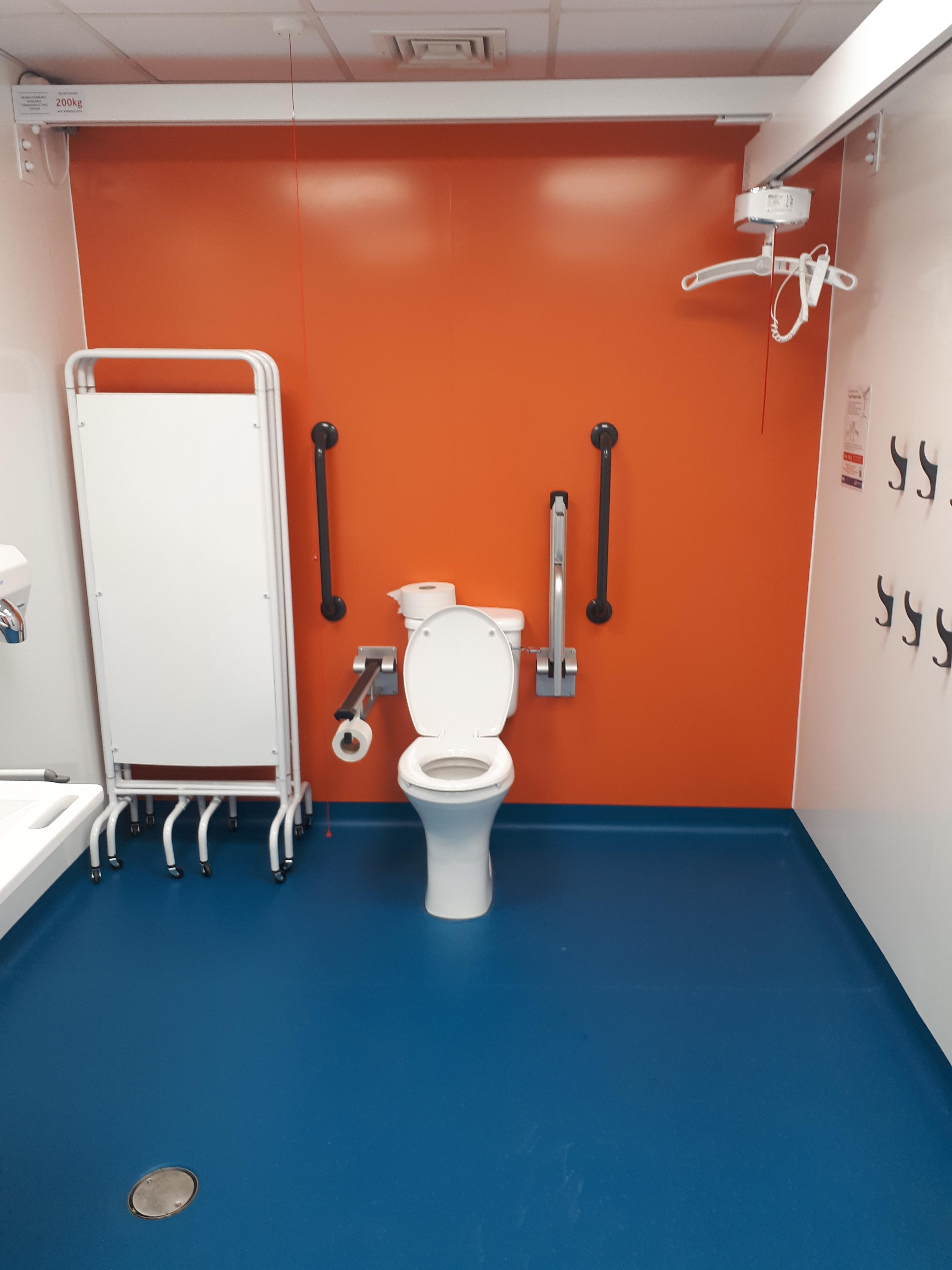 FACILITIES: Bench – Height Adjustable, Adult Sized, Wall Mounted | Hoist – Ceiling | Peninsular Toilet | Non-Slip Floor | Floor Space (sq. m) – 10, | Emergency Alarm | Privacy Screen | Paper Roll | Managed | Locked