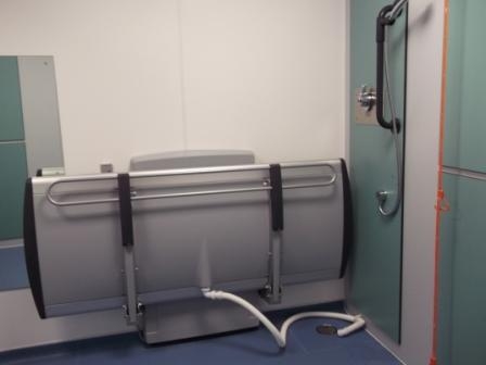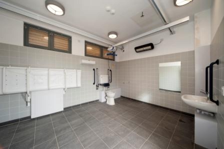 FACILITIES: Bench – Height Adjustable, Adult Sized, Wall Mounted | Hoist – Ceiling | Non-Slip Floor | Floor Space (sq. m) – 12 | Emergency Alarm | Paper Roll | Managed | Locked