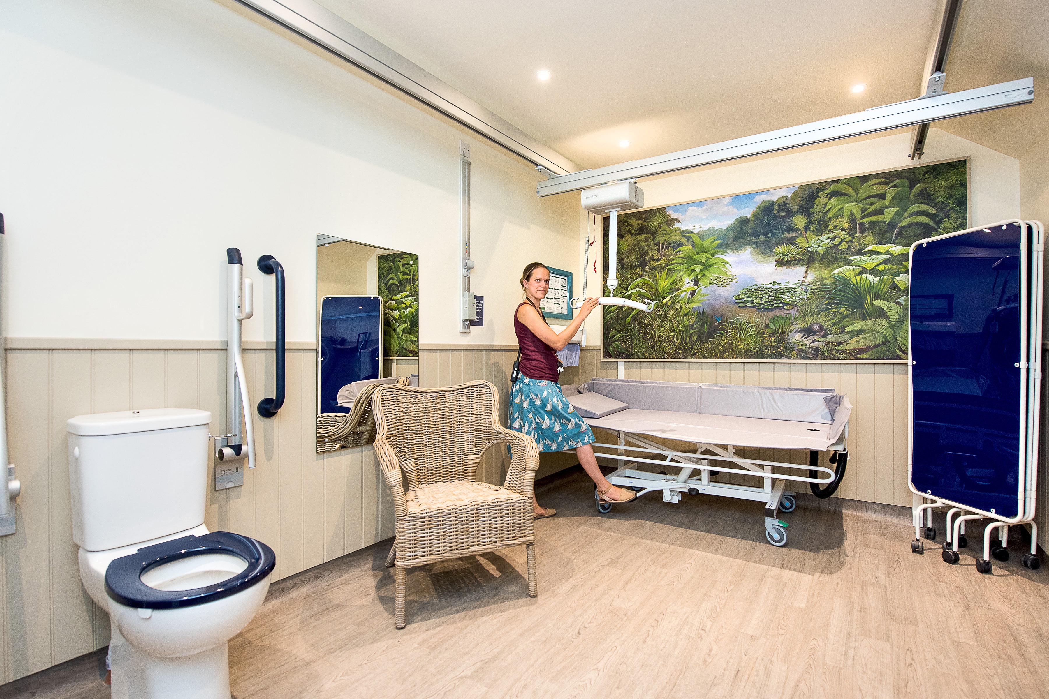 FACILITIES: Bench – Height Adjustable. Adult Sized | Hoist – Ceiling | Peninsular Toilet | Non-Slip Floor | Floor Space (sq. m) – 12, | Emergency Alarm | Paper Roll | Managed
