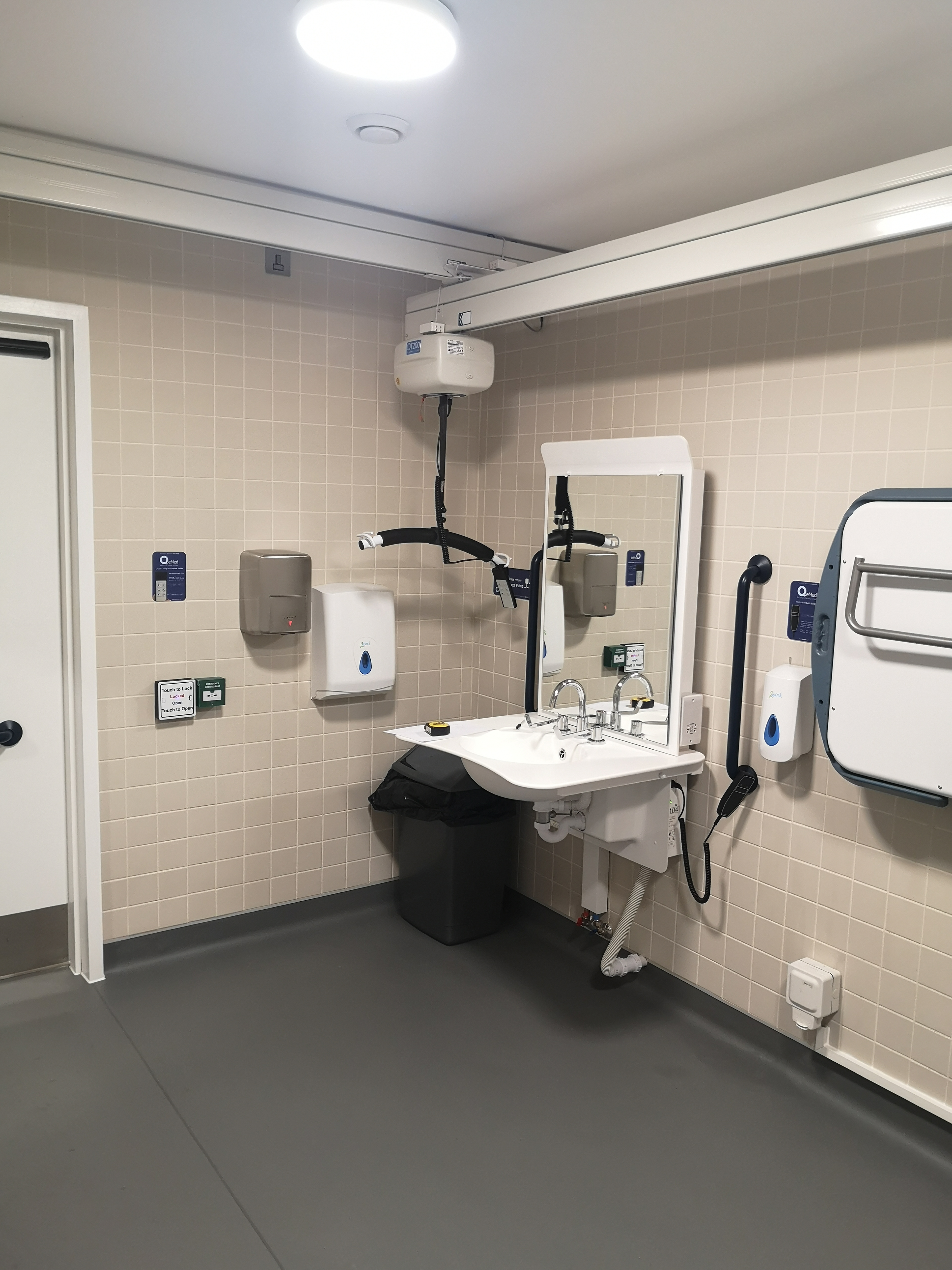 FACILITIES: Bench – Height Adjustable. Adult Sized, Free Standing | Hoist – Ceiling | Peninsular Toilet | Non-Slip Floor | Floor Space (sq. m) – 10, | Emergency Alarm | Privacy Screen | Paper Roll | Radar Key | Managed | Locked
