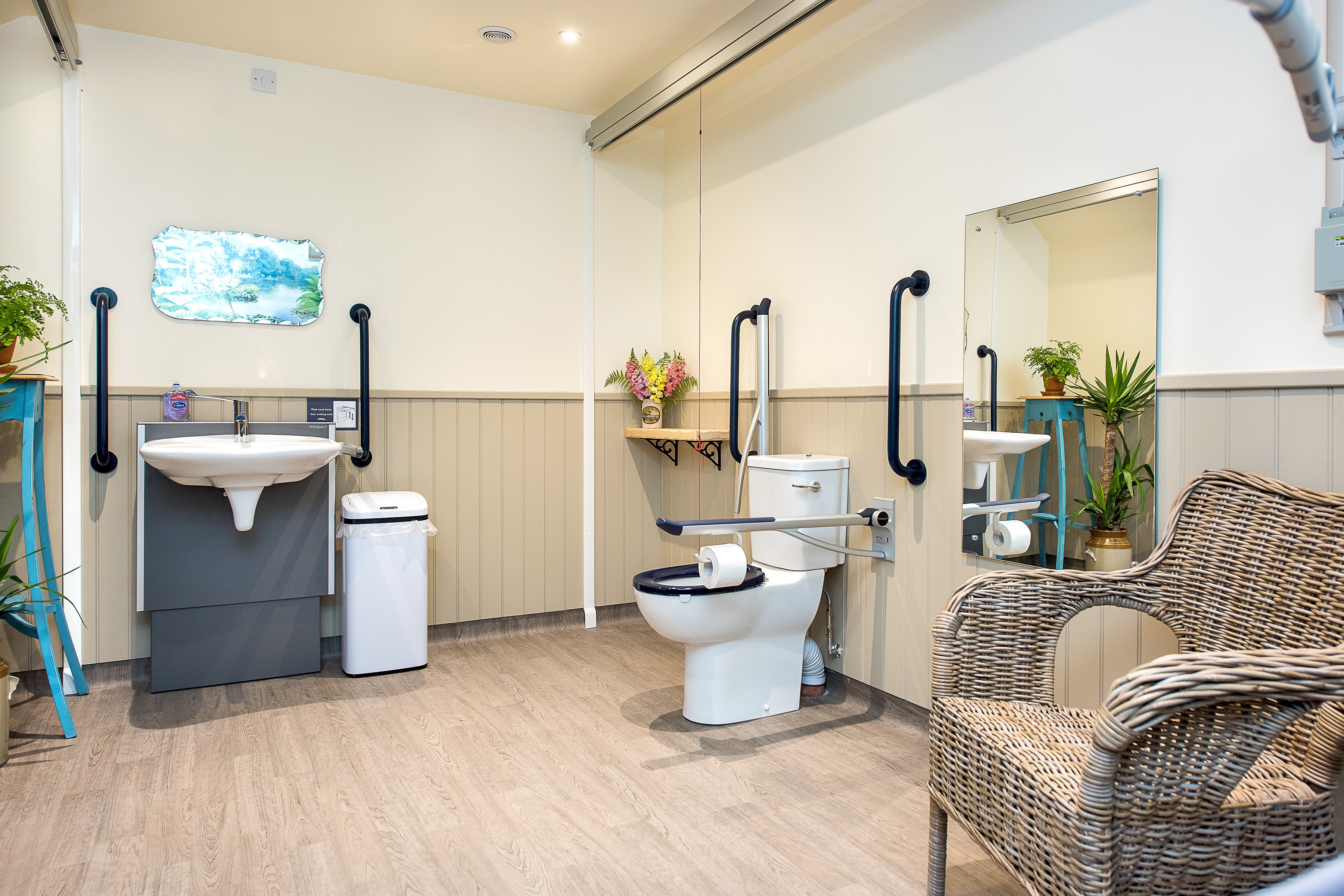 FACILITIES: Bench – Height Adjustable, Adult Sized, Free Standing | Hoist – Ceiling | Peninsular Toilet | Height Adjustable Washbasin | Non-Slip Floor | Floor Space (sq. m) – 12 | Emergency Alarm | Privacy Screen | Paper Roll Radar Key | Managed | Locked