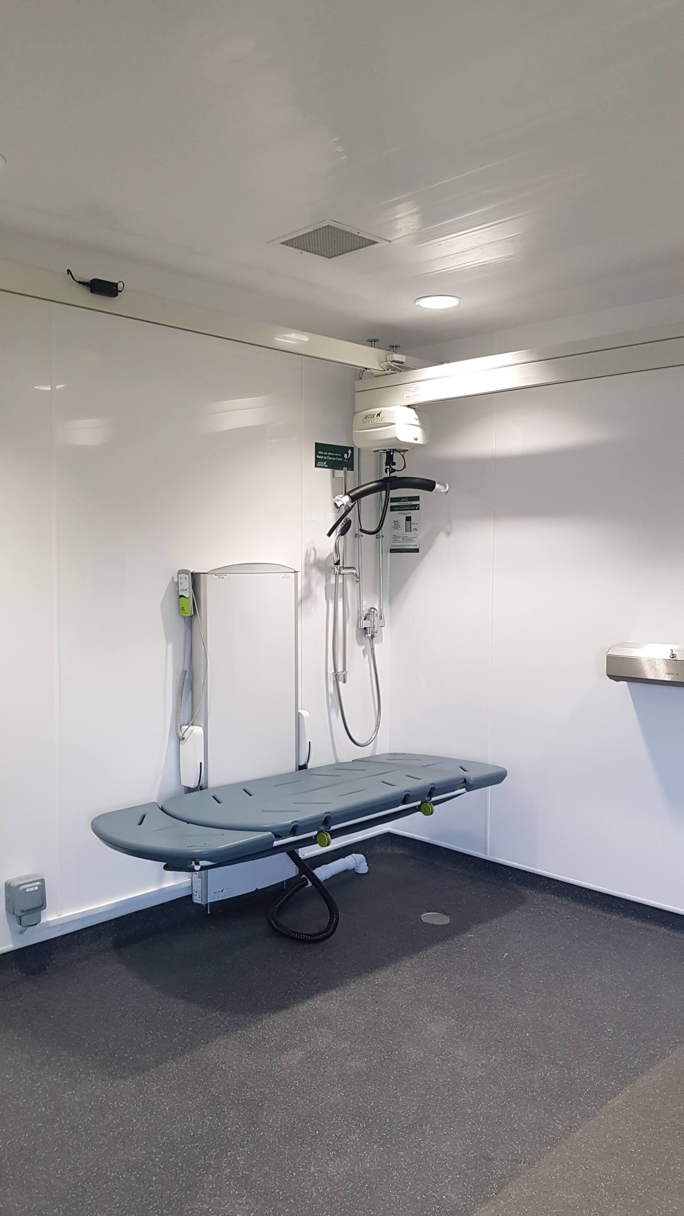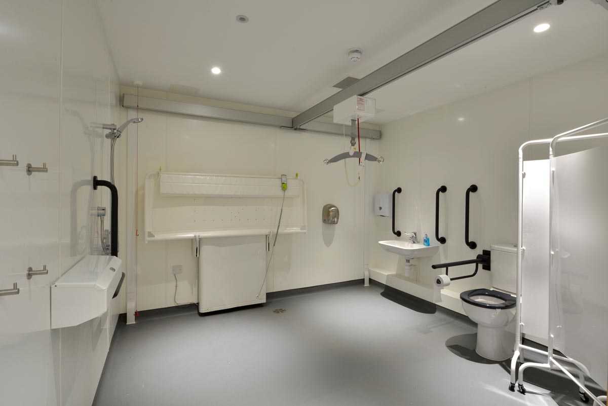FACILITIES: Bench – Height Adjustable, Adult Sized, Free Standing | Hoist – Ceiling | Wash & Dry Toilet | Height Adjustable Washbasin | Non-Slip Floor | Floor Space (sq. m) – 12 | Emergency Alarm | Privacy Screen | Managed