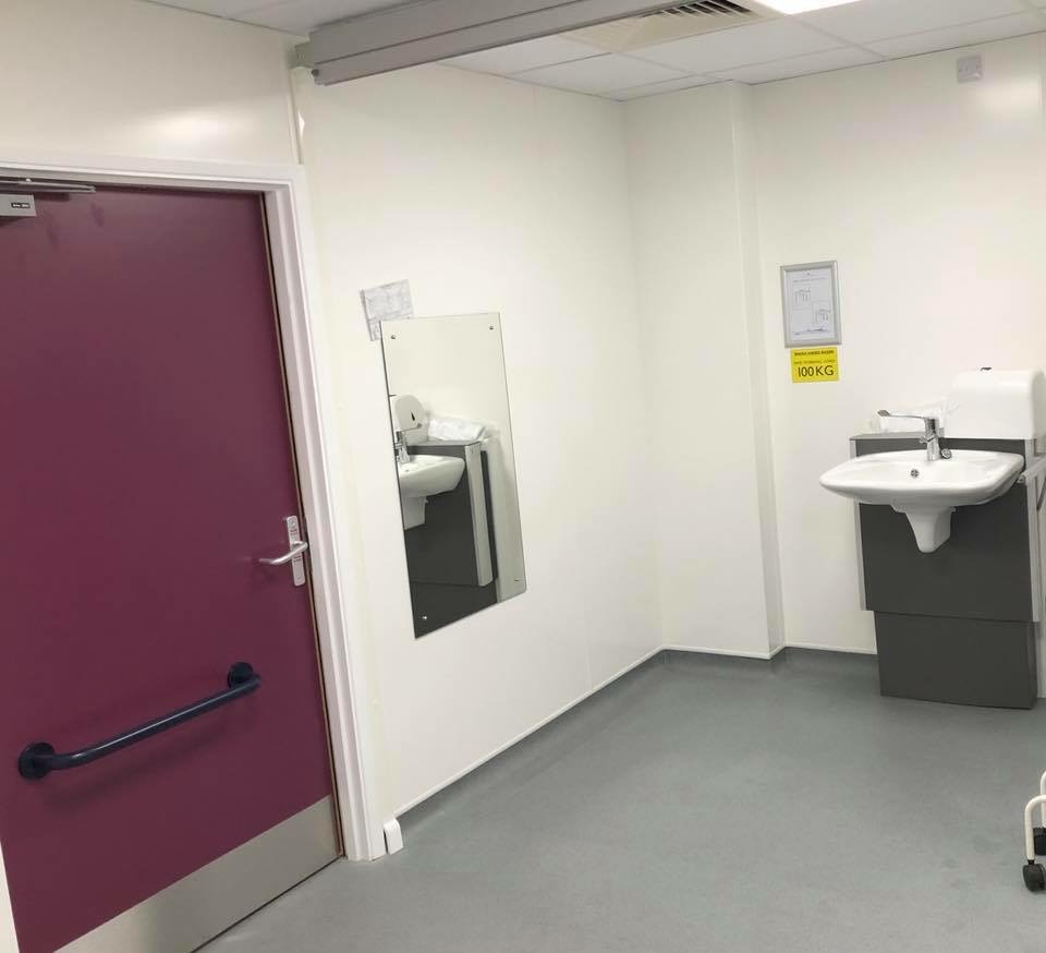 FACILITIES: Bench – Height Adjustable, Adult Sized, Free Standing | Hoist – Ceiling | Peninsular Toilet | Non-Slip Floor | Floor Space (sq. m) – 9.0 | Emergency Alarm | Privacy Screen | Paper Roll Radar Key | Managed | Locked Colostomy Shelf