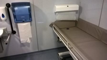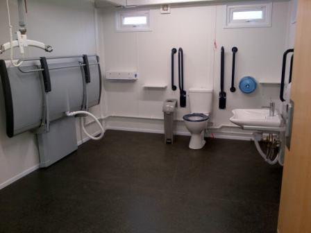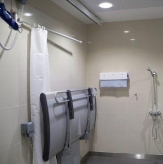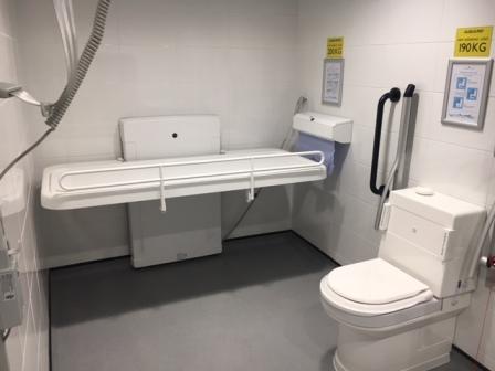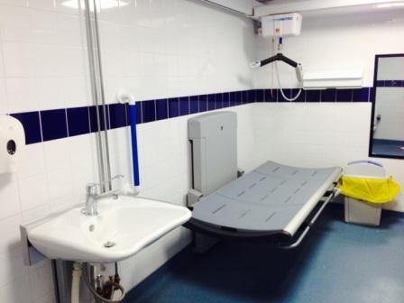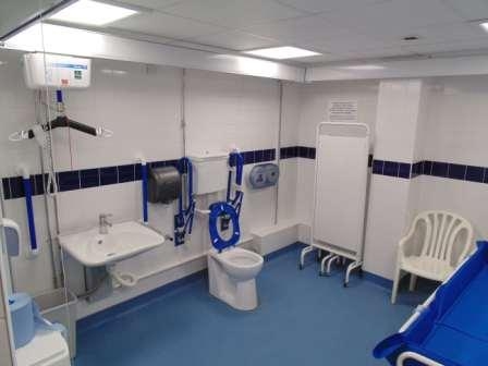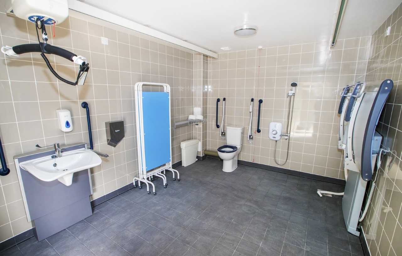 FACILITIES: Bench – Height Adjustable, Adult Sized, Wall Mounted | Hoist – Mobile | Peninsular Toilet | Height Adjustable Washbasin | Non-Slip Floor | Floor Space (sq. m) – 12 | Emergency Alarm | Privacy Screen | Paper Roll Locked