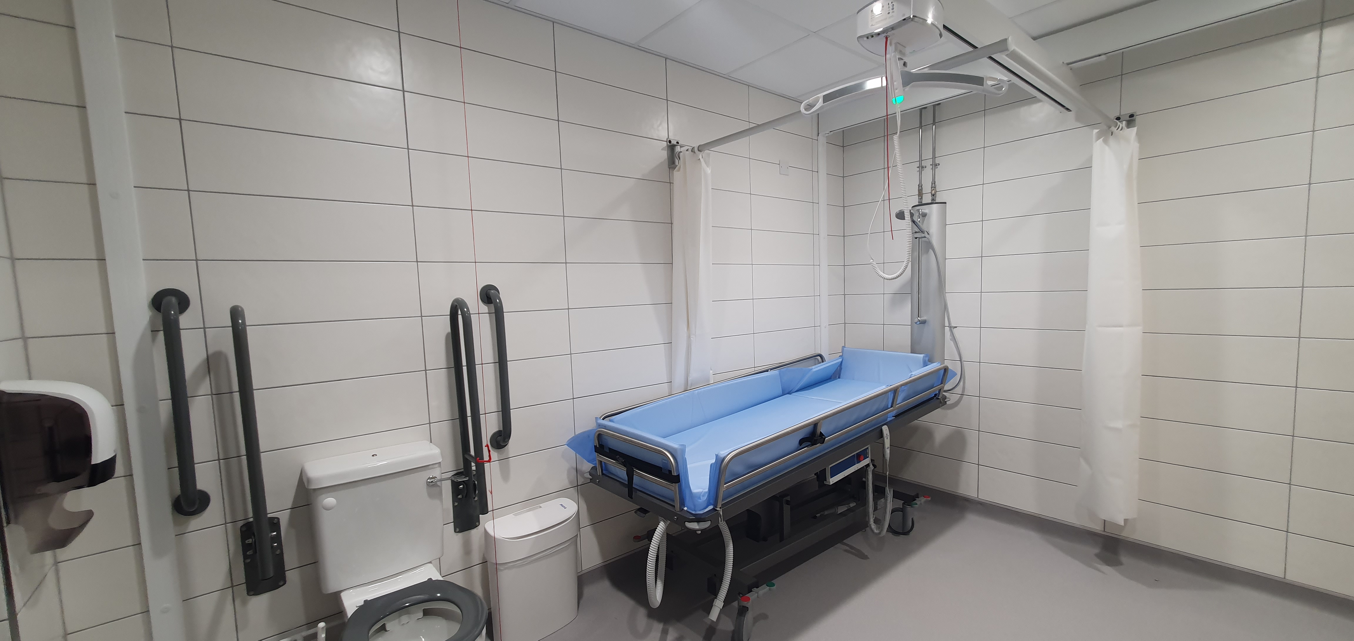 FACILITIES: Bench – Height Adjustable, Adult Sized, Free Standing | Hoist – Ceiling | Peninsular Toilet | Height Adjustable Washbasin | Non-Slip Floor | Floor Space (sq. m) – 12 | Emergency Alarm | Privacy Screen | Paper Roll Managed