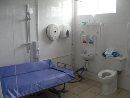 FACILITIES: Bench – Height Adjustable, Adult Sized, Free Standing | Hoist – Ceiling | Peninsular Toilet | Height Adjustable Washbasin | Non-Slip Floor | Emergency Alarm | Paper Roll | Locked