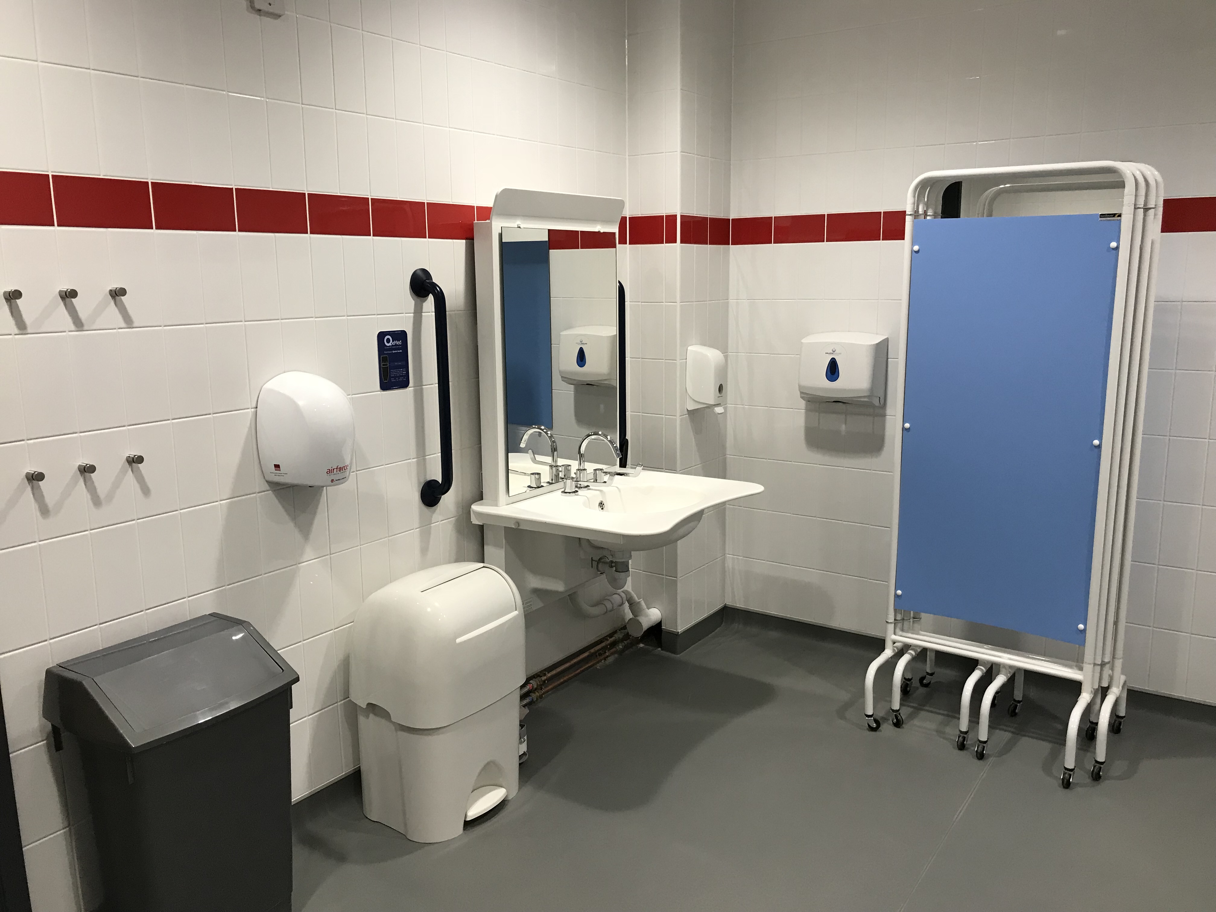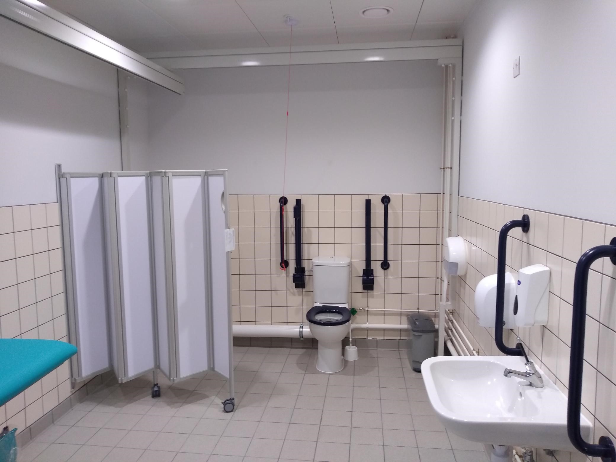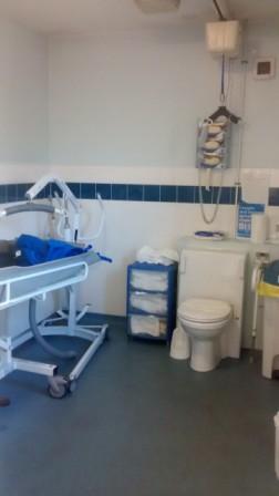 FACILITIES: Bench – Height Adjustable, Adult Sized, Free Standing | Hoist – Ceiling | Peninsular Toilet | Non-Slip Floor | Floor Space (sq. m) – 12 | Emergency Alarm | Privacy Screen | Paper Roll | Managed