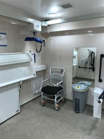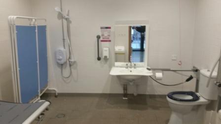 FACILITIES: Bench – Height Adjustable, Adult Sized, Free Standing | Hoist – Mobile | Peninsular Toilet | Non-Slip Floor | Floor Space (sq. m) – 7 | Emergency Alarm | Privacy Screen | Paper Roll | Managed | Accessible Shower
