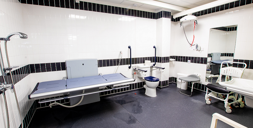 FACILITIES: Bench – Height Adjustable, Adult Sized, Free Standing | Hoist – Ceiling | Wash & Dry Toilet | Height Adjustable Washbasin | Non-Slip Floor | Emergency Alarm | Paper Roll | Managed