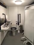 FACILITIES: Bench – Height Adjustable, Adult Sized, Free Standing | Hoist – Ceiling | Peninsular Toilet | Height Adjustable Washbasin | Non-Slip Floor | Floor Space (sq. m) – 14 | Emergency Alarm | Privacy Screen | Paper Roll Radar Key | Managed | Locked | Accessible Shower | Colostomy Shelf