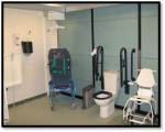 FACILITIES: Bench – Height Adjustable, Adult Sized, Free Standing | Hoist – Ceiling | Peninsular Toilet | Non-Slip Floor | Floor Space (sq. m) – 12 | Emergency Alarm | Managed | Locked | Accessible Shower