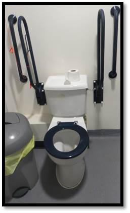 FACILITIES: Bench – Height Adjustable, Adult Sized, Free Standing | Hoist – Ceiling | Peninsular Toilet | Non-Slip Floor | Floor Space (sq. m) – 12 | Emergency Alarm | Privacy Screen | Paper Roll | Radar Key | Managed | Locked Accessible Shower
