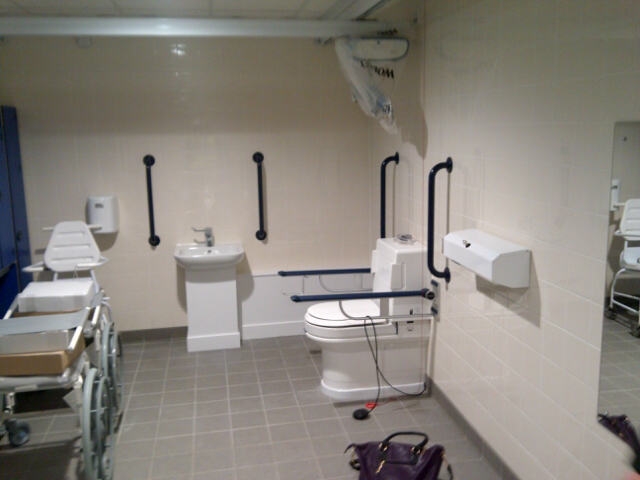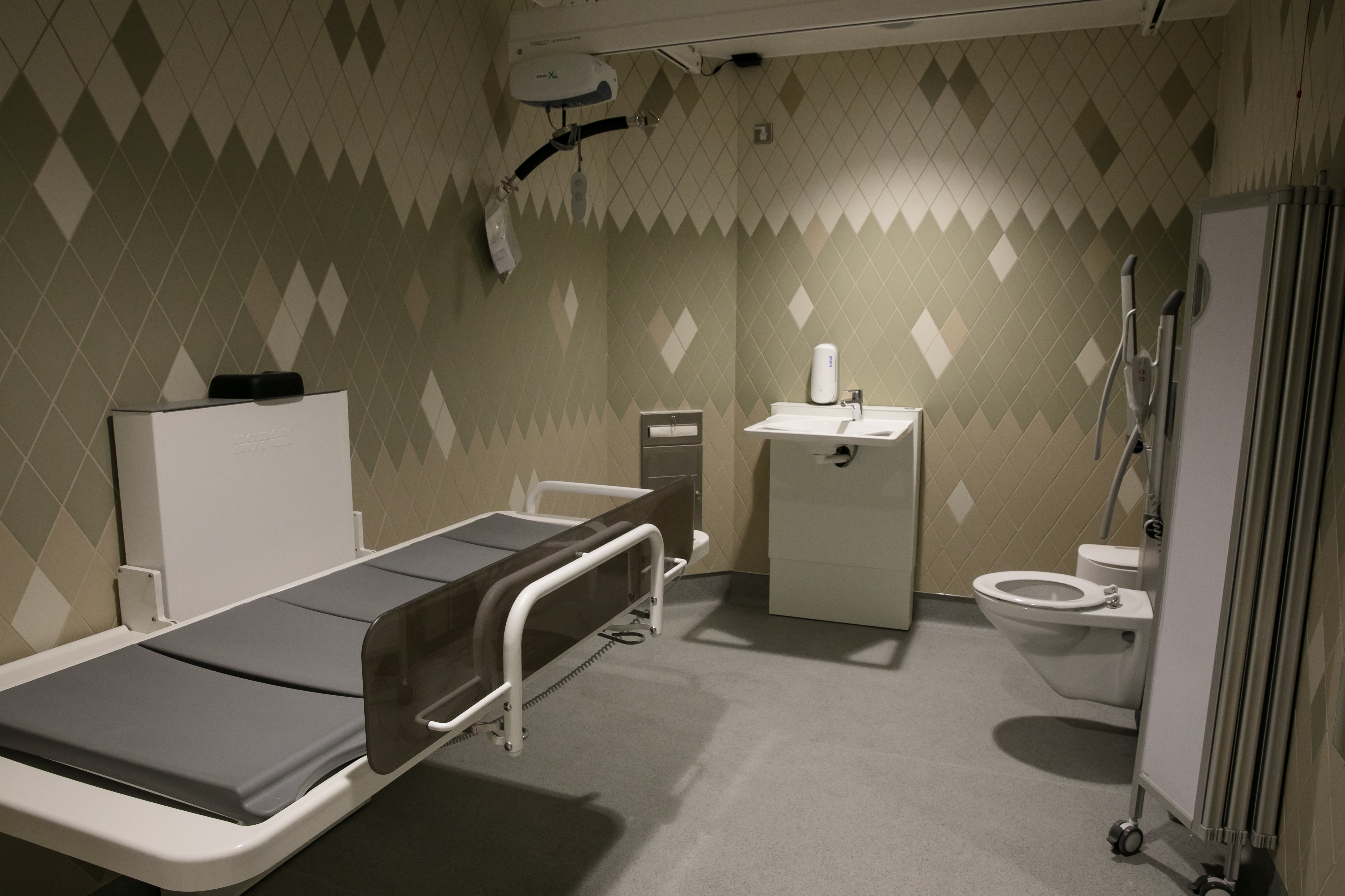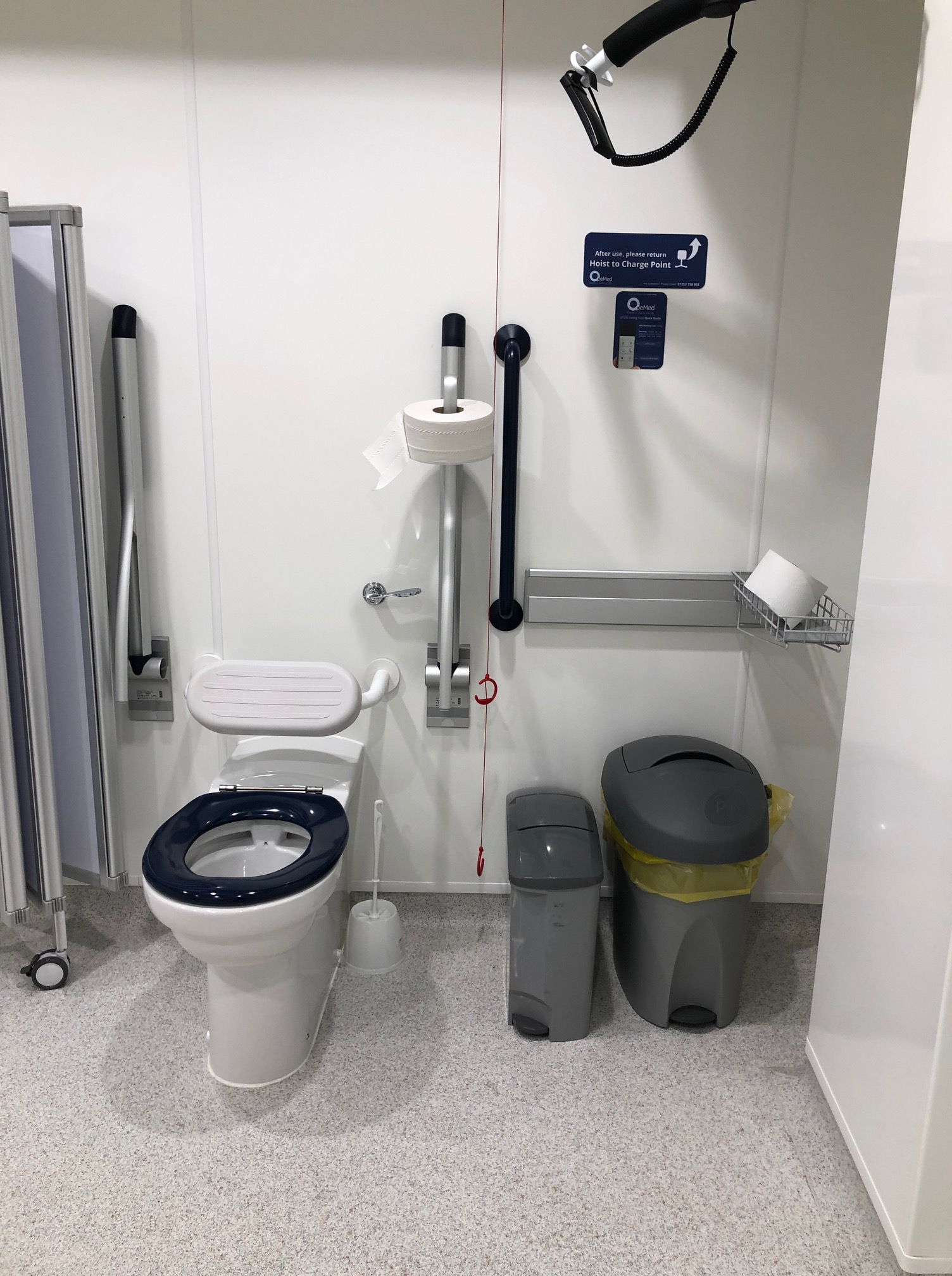 FACILITIES: Bench – Height Adjustable, Adult Sized, Wall Mounted | Hoist – Ceiling | Peninsular Toilet | Non-Slip Floor | Floor Space (sq. m) – 15 | Emergency Alarm | Paper Roll | Radar Key | Managed | Locked