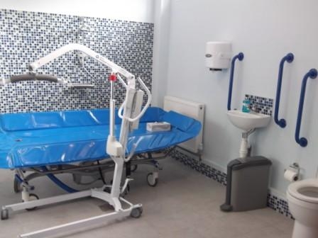 FACILITIES: Bench – Height Adjustable, Adult Sized, Free Standing | Hoist – Mobile | Peninsular Toilet | Non-Slip Floor | Floor Space (sq. m) – 12 | Emergency Alarm | Paper Roll | Managed
