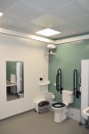 FACILITIES: Bench – Height Adjustable, Adult Sized, Free Standing | Hoist – Ceiling | Peninsular Toilet | Height Adjustable Washbasin | Non-Slip Floor | Floor Space (sq. m) – 12 | Emergency Alarm | Privacy Screen | Paper Roll Managed | Locked