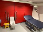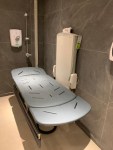 FACILITIES: Bench – Height Adjustable, Adult Sized, Free Standing | Hoist – Ceiling | Peninsular Toilet | Non-Slip Floor | Floor Space (sq. m) – 7.0 | Emergency Alarm | Privacy Screen | Paper Roll | Radar Key | Managed | Locked Colostomy Shelf