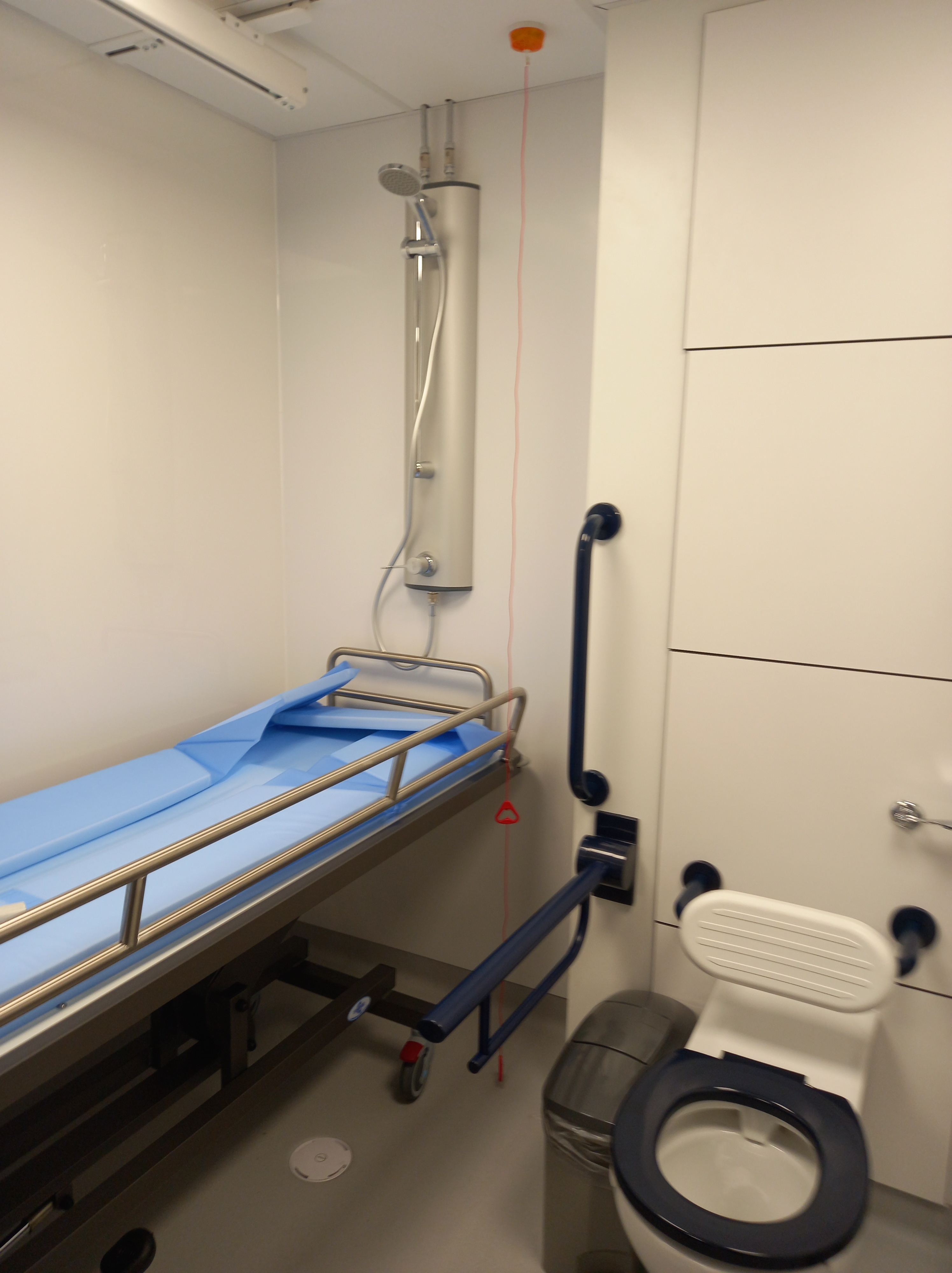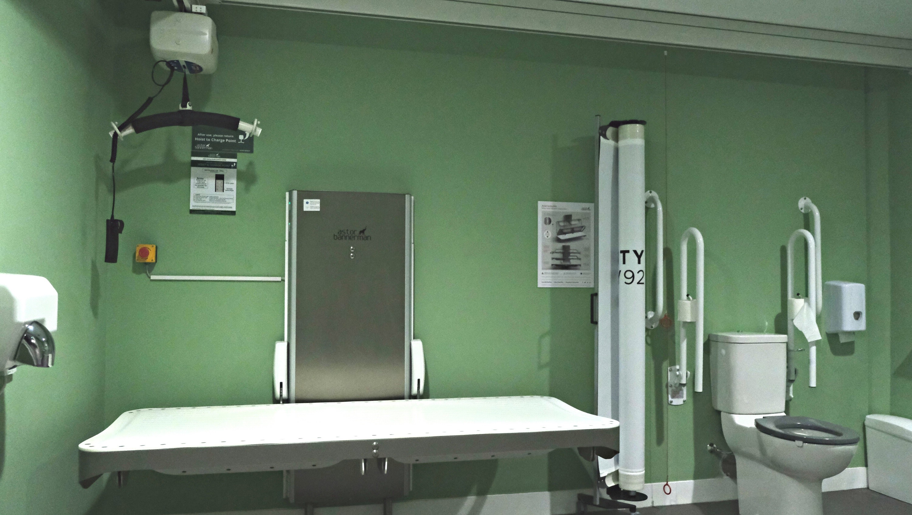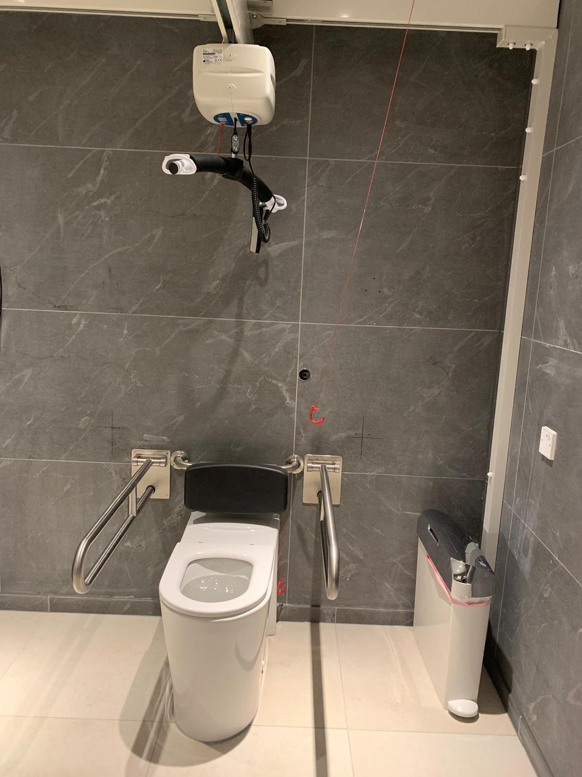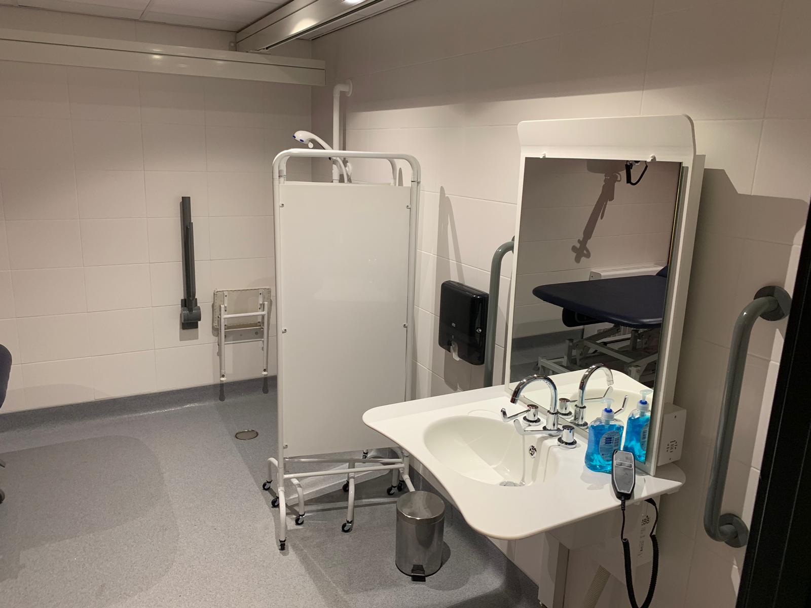 FACILITIES: Bench – Height Adjustable, Adult Sized, Free Standing | Hoist – Ceiling | Peninsular Toilet | Height Adjustable Washbasin | Non-Slip Floor | Floor Space (sq. m) – 12 | Emergency Alarm | Privacy Screen | Paper Roll Radar Key | Managed | Locked | Colostomy Shelf