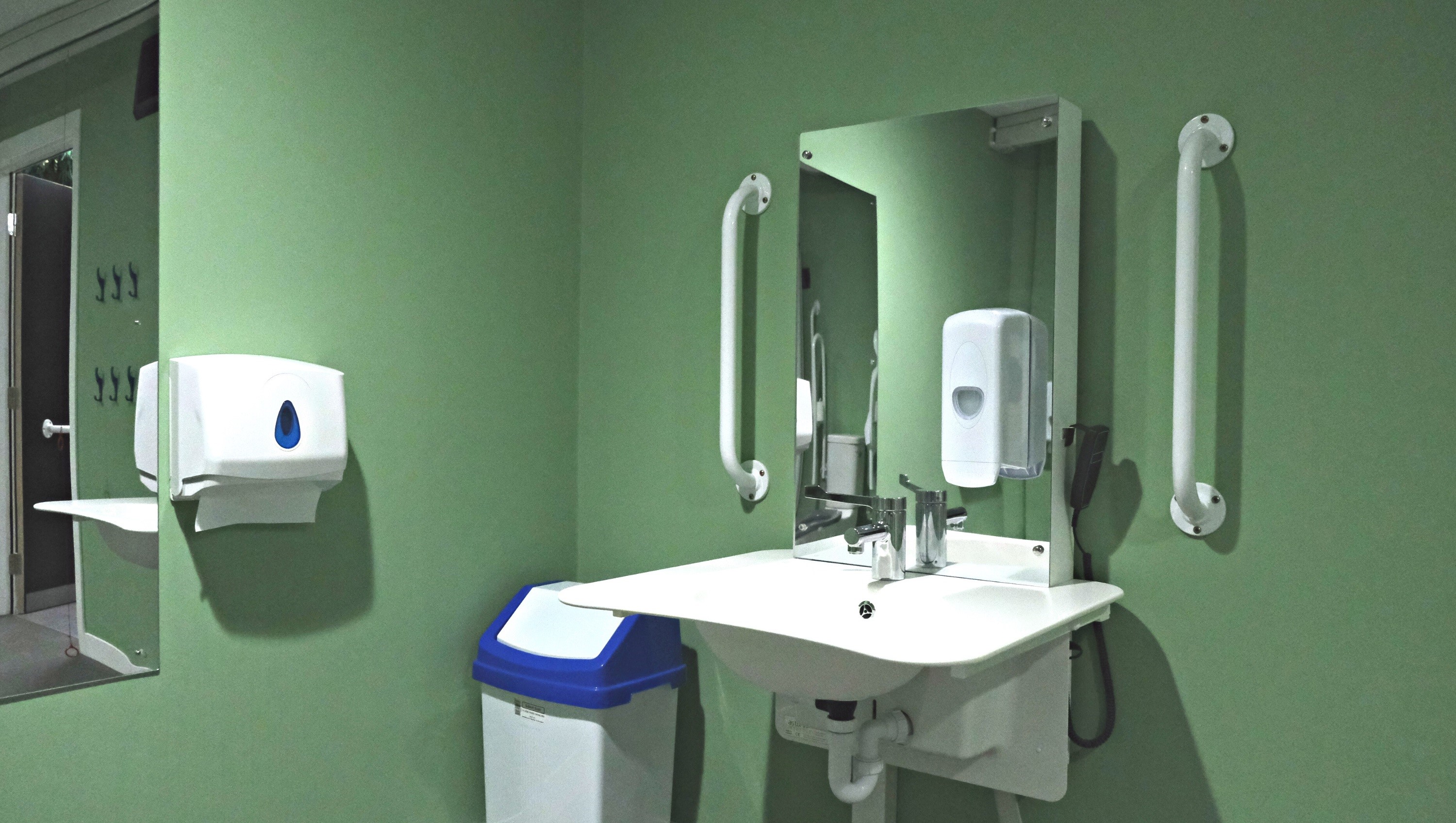 FACILITIES: Bench – Height Adjustable, Adult Sized, Wall Mounted | Hoist – Ceiling | Peninsular Toilet | Height Adjustable Washbasin | Non-Slip Floor | Floor Space (sq. m) – 12 | Emergency Alarm | Privacy Screen | Paper Roll Radar Key | Managed | Locked | Colostomy Shelf