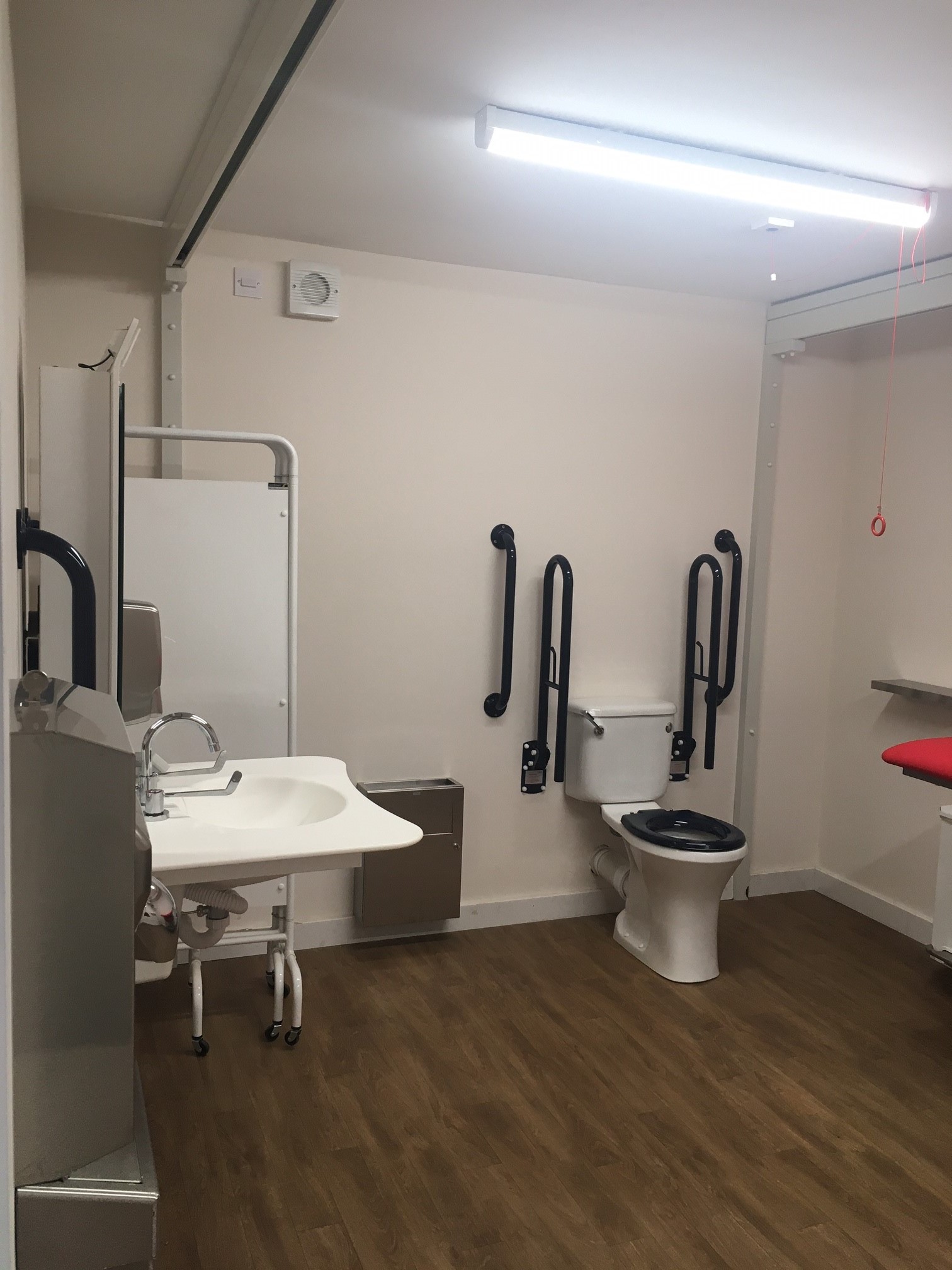 FACILITIES: Bench – Height Adjustable, Adult Sized, Free Standing | Hoist – Ceiling | Peninsular Toilet | Height Adjustable Washbasin | Non-Slip Floor | Floor Space (sq. m) – 12 | Emergency Alarm | Privacy Screen | Paper Roll Radar Key | Managed | Locked | Colostomy Shelf