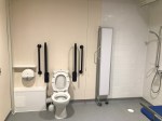 FACILITIES: Bench – Height Adjustable, Adult Sized, Free Standing | Hoist – Ceiling | Peninsular Toilet | Non-Slip Floor | Floor Space (sq. m) – 10 | Emergency Alarm | Privacy Screen | Paper Roll | Radar Key | Managed | Locked Colostomy Shelf