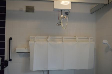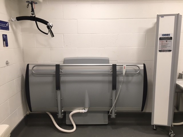 FACILITIES: Bench – Height Adjustable, Adult Sized, Free Standing | Hoist- Ceiling | Peninsular Toilet | Non-Slip Floor | Floor Space (sq. m) – 12 | Emergency Alarm | Privacy Screen | Paper Roll | Managed