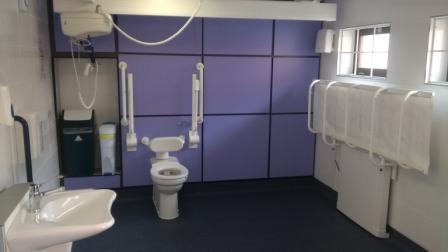 FACILITIES: Bench – Height Adjustable, Adult Sized, Free Standing | Hoist – Mobile | Peninsular Toilet | Non-Slip Floor | Floor Space (sq. m) – 12 | Emergency Alarm | Privacy Roll | Paper Roll | Managed