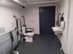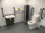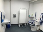 FACILITIES: Bench – Height Adjustable, Adult Sized, Free Standing | Hoist – Ceiling | Peninsular Toilet | Non-Slip Floor | Floor Space (sq. m) – 15 | Emergency Alarm | Privacy Screen | Paper Roll | Radar Key | Managed | Locked Colostomy Shelf