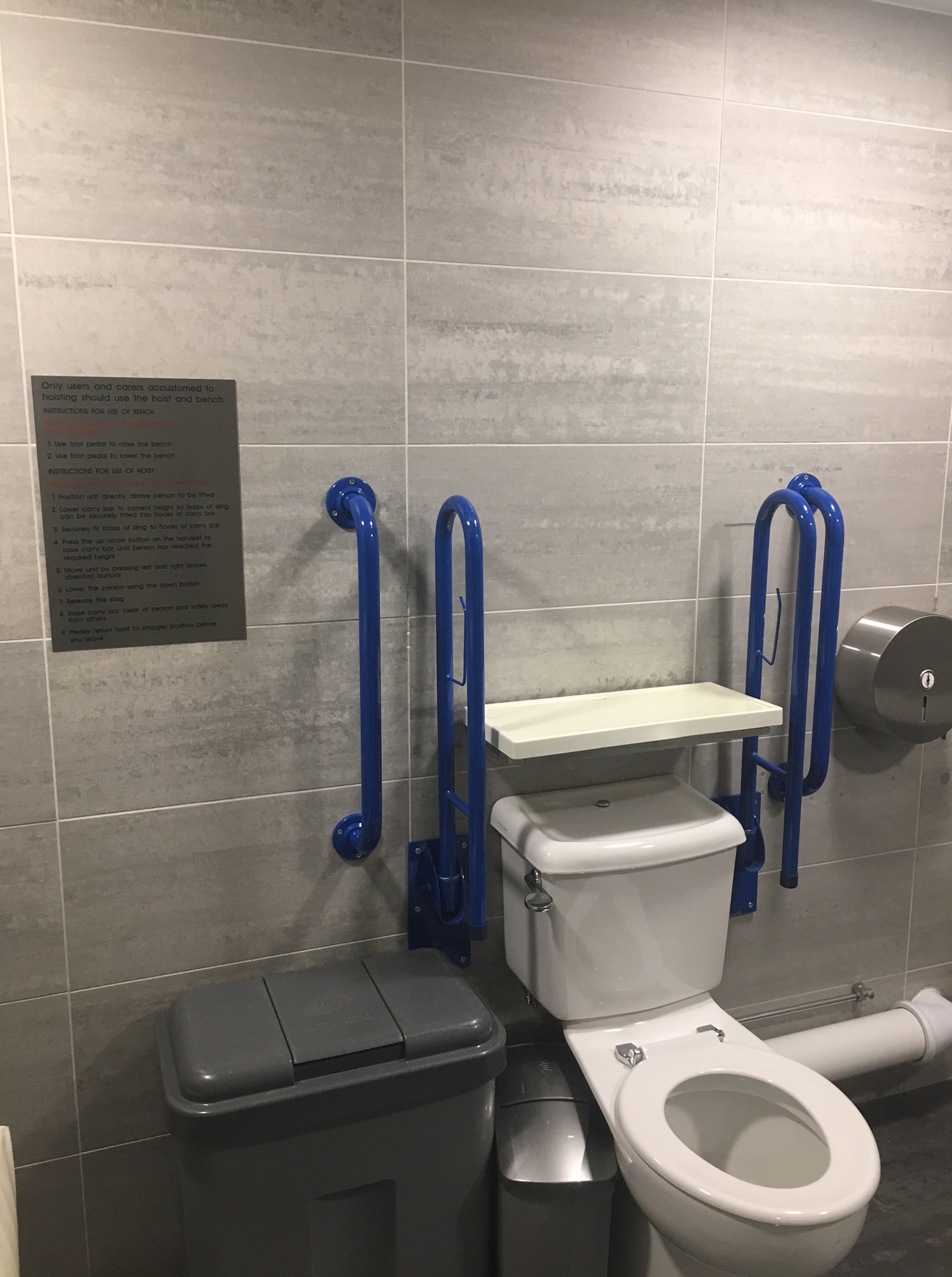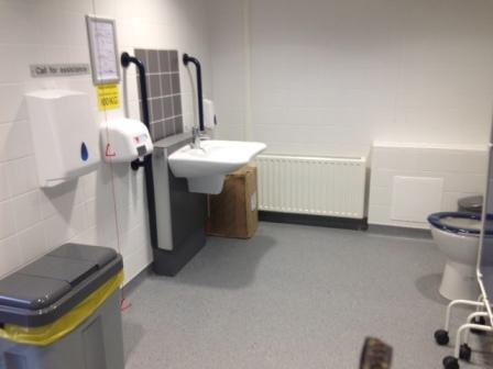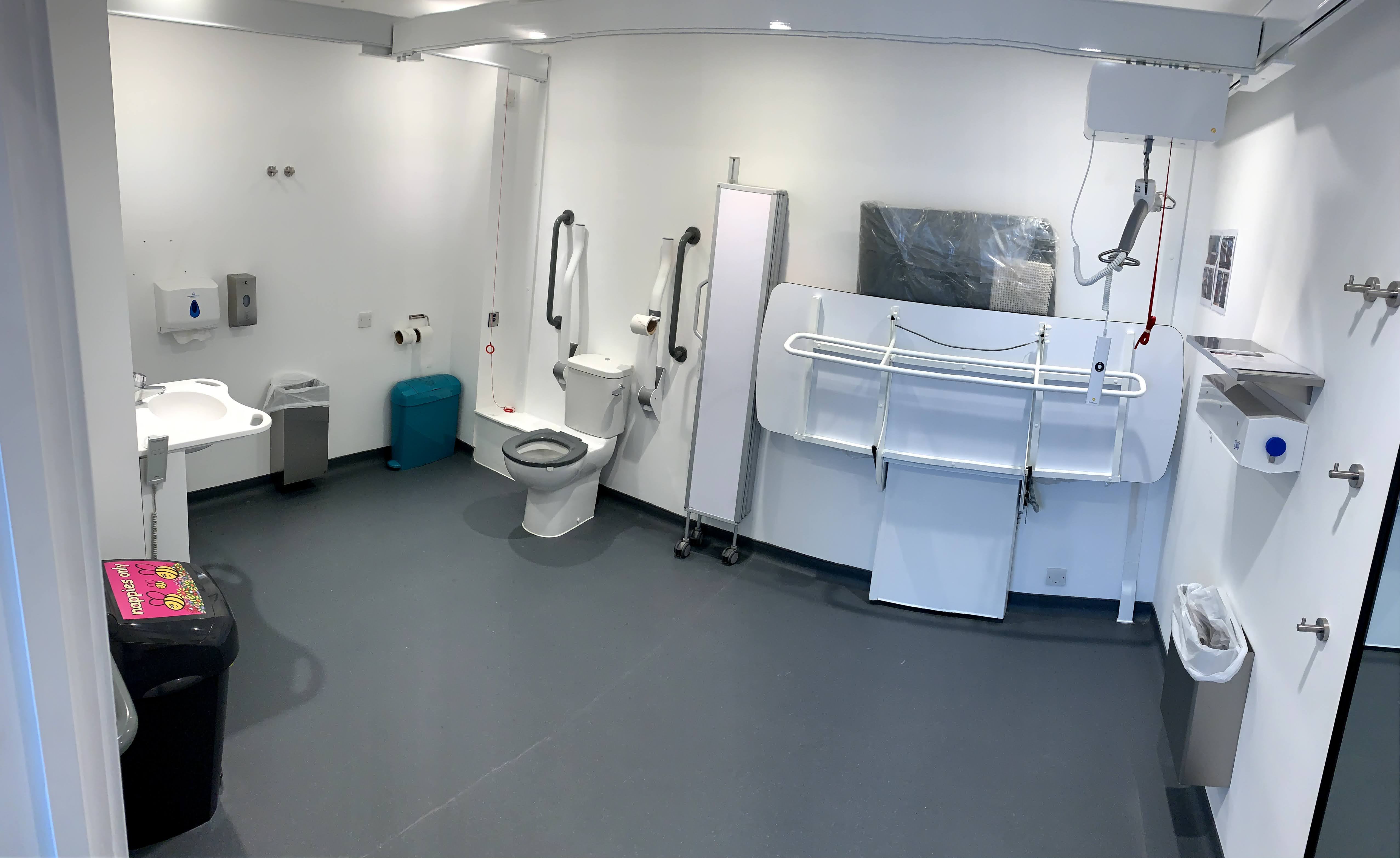FACILITIES: Bench – Height Adjustable, Adult Sized, Free Standing | Hoist – Ceiling | Peninsular Toilet | Non-Slip Floor | Floor Space (sq. m) – 12 | Emergency Alarm | Paper Roll | Radar Key | Managed | Locked