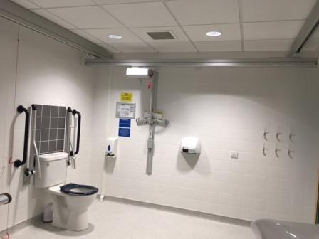 FACILITIES: Bench – Height Adjustable, Adult Sized, Free Standing | Hoist – Ceiling | Peninsular Toilet | Height Adjustable Washbasin | Non-Slip Floor | Floor Space (sq. m) – 7 | Emergency Alarm | Paper Roll | Radar Key Managed | Locked