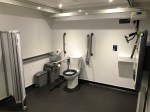FACILITIES: Bench – Height Adjustable, Adult Sized, Free Standing | Hoist – Ceiling | Peninsular Toilet | Non-Slip Floor | Floor Space (sq. m) – 12 | Emergency Alarm | Privacy Screen | Paper Roll | Radar Key | Managed | Locked Accessible Shower