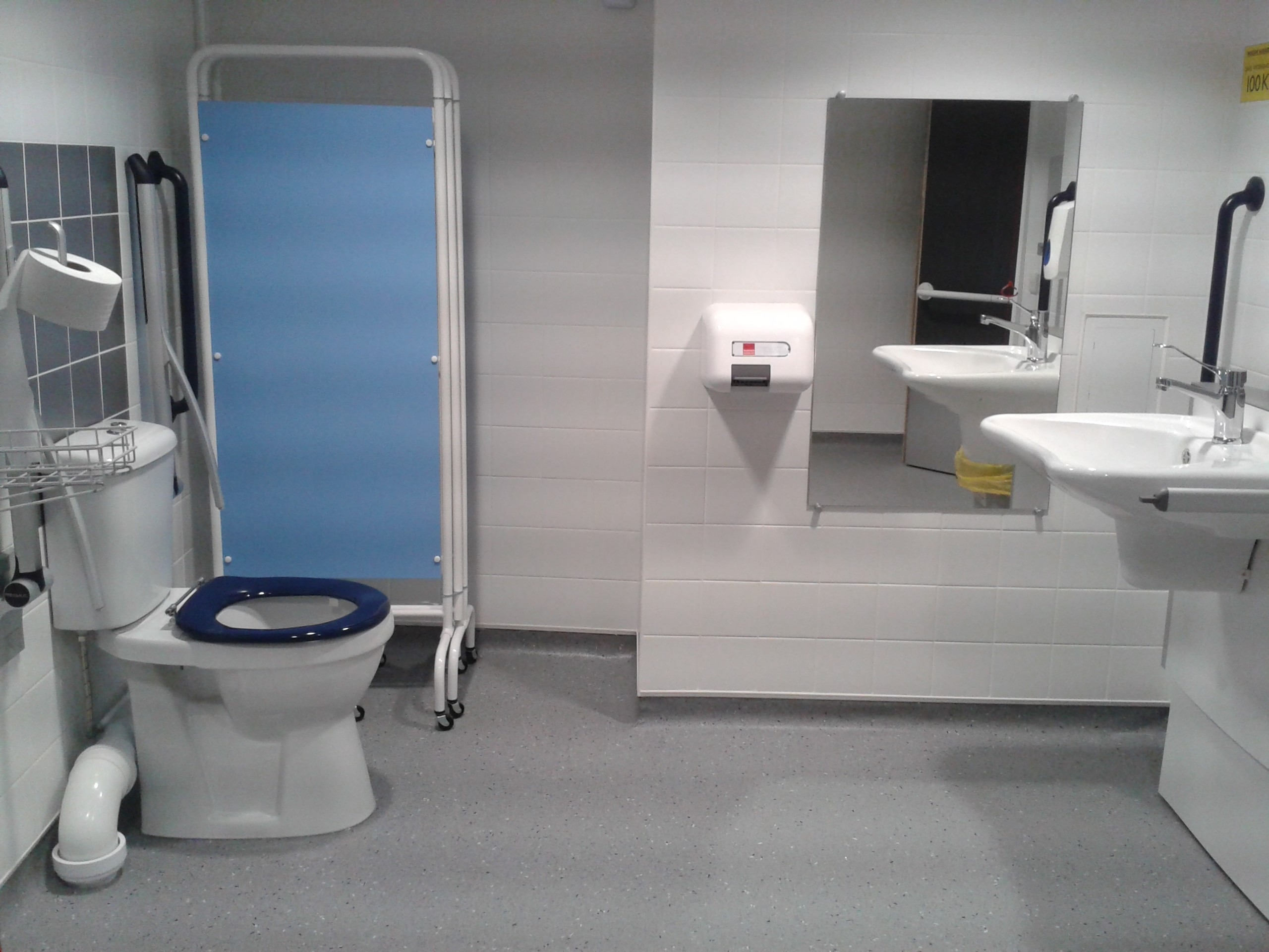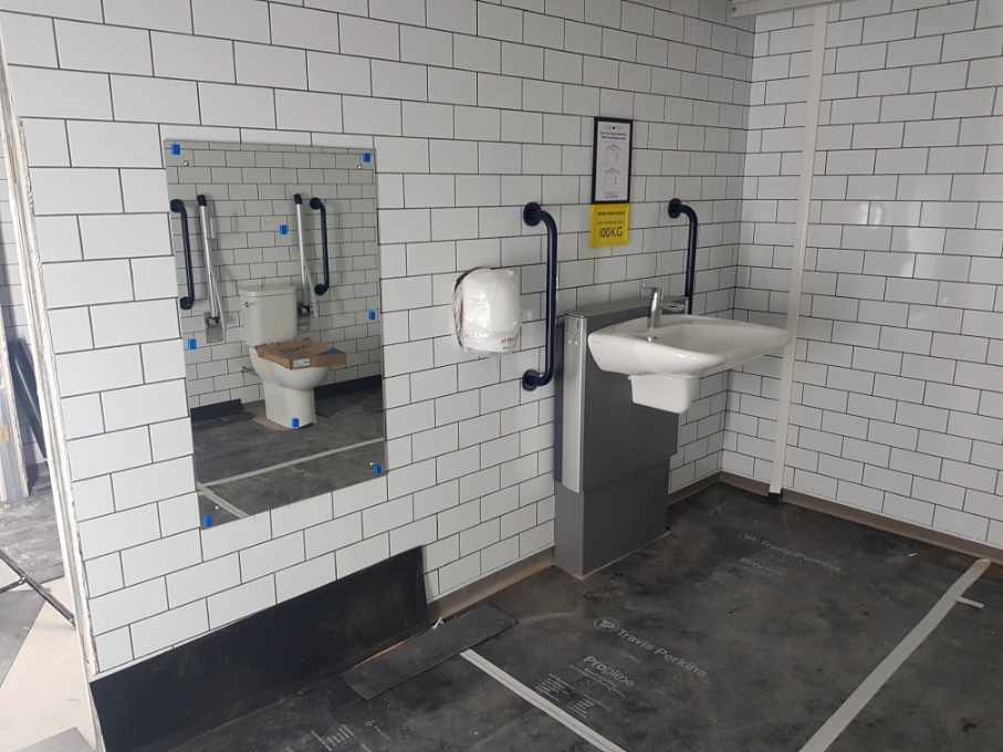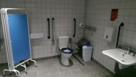 FACILITIES: Bench – Height Adjustable, Adult Sized, Free Standing | Hoist – Ceiling | Peninsular Toilet | Height Adjustable Washbasin | Non-Slip Floor | Emergency Alarm | Privacy Screen | Paper Roll | Radar Key | Managed Locked | Accessible Shower