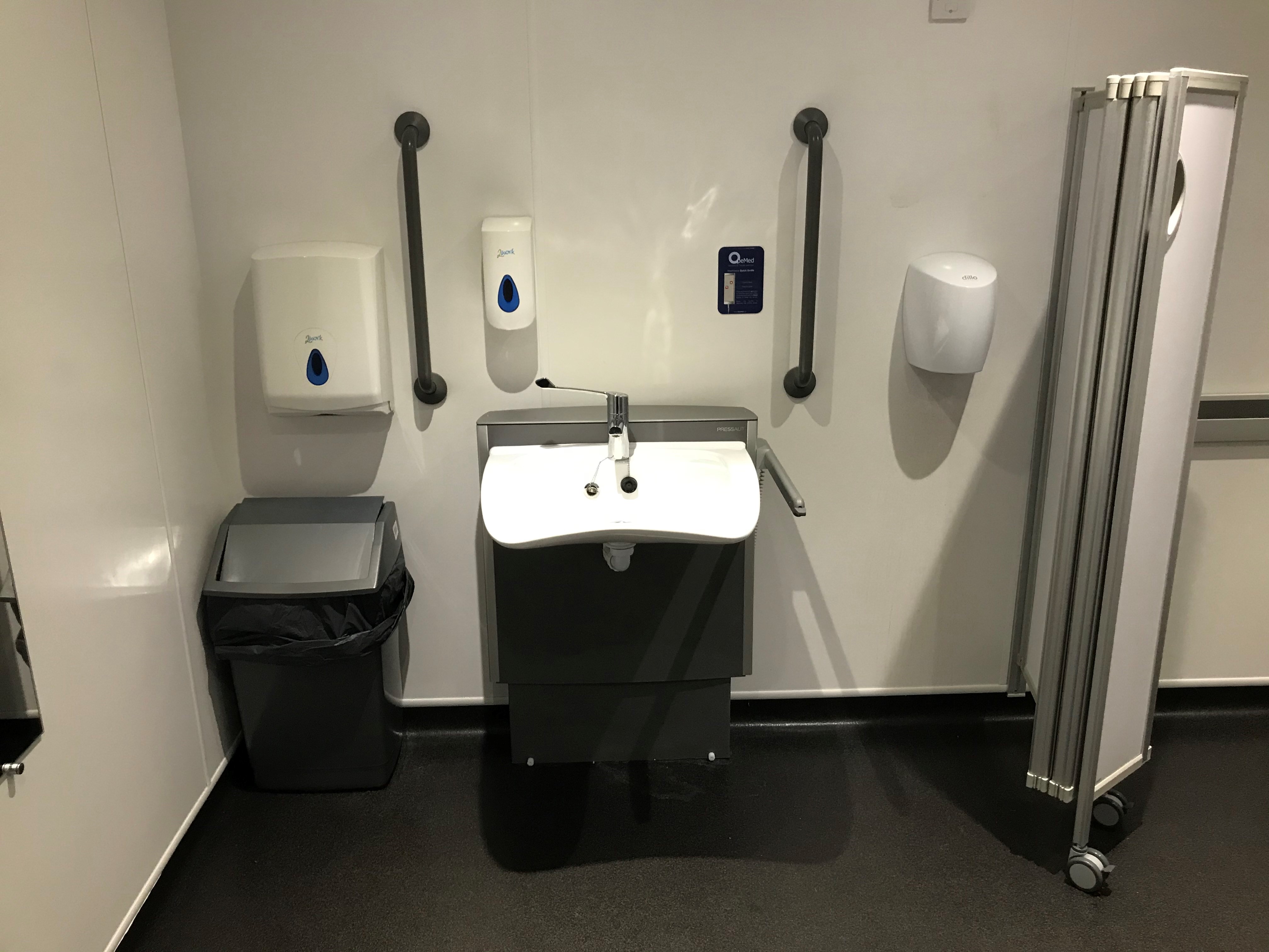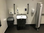 FACILITIES: Bench – Height Adjustable, Adult Sized, Wall Mounted | Hoist – Ceiling | Peninsular Toilet | Height Adjustable Washbasin | Non-Slip Floor | Floor Space (sq. m) – 12 | Emergency Alarm | Privacy Screen | Paper Roll Radar Key | Managed | Locked | Colostomy Shelf