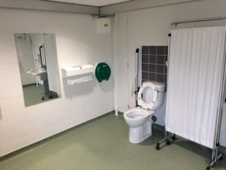 FACILITIES: Bench – Height Adjustable, Adult Sized, Free Standing | Hoist – Ceiling | Peninsular Toilet | Height Adjustable Washbasin | Non-Slip Floor | Floor Space (sq. m) – 12 | Emergency Alarm | Paper Roll | Radar Key Managed | Locked
