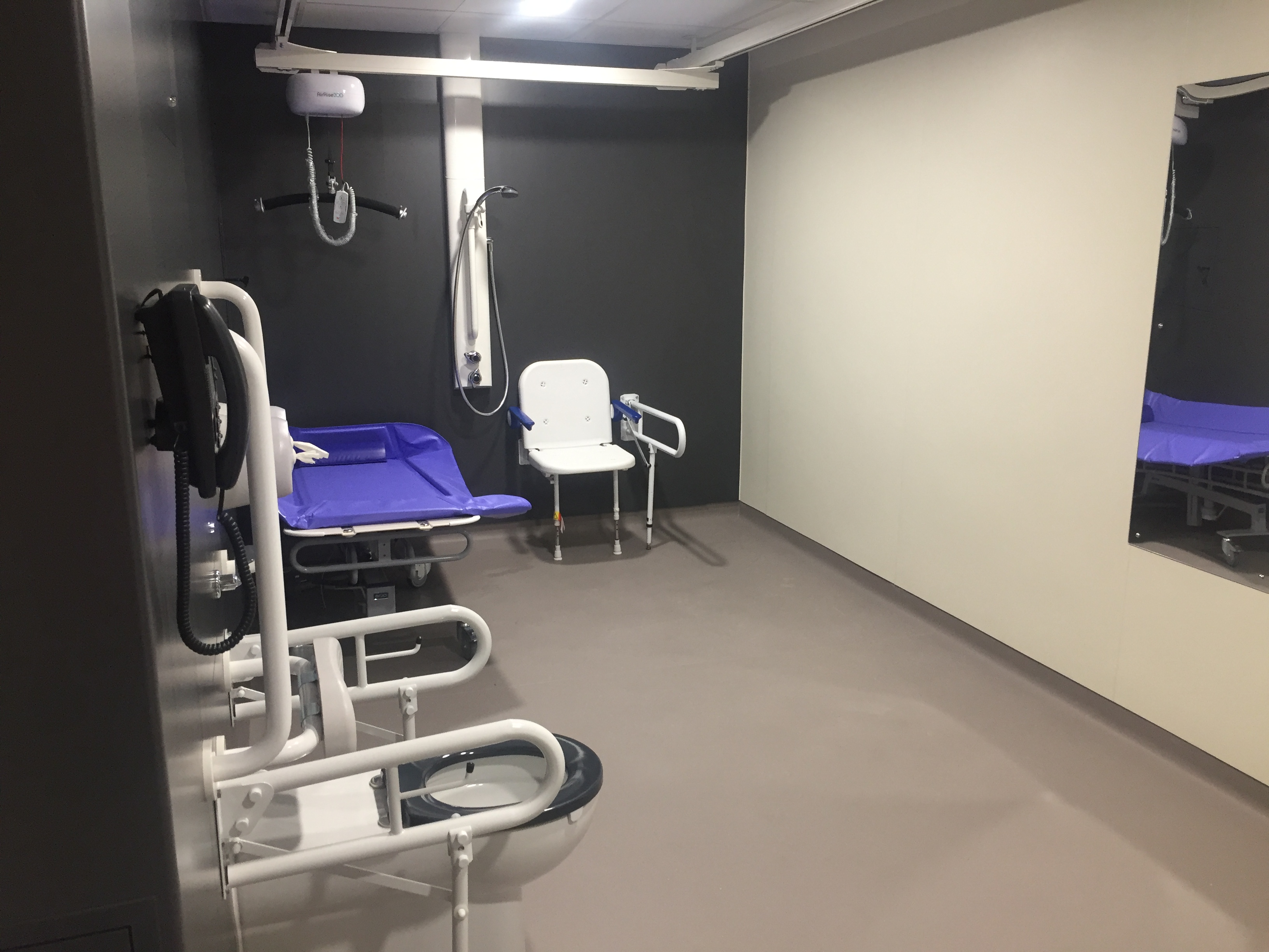 FACILITIES: Bench – Height Adjustable, Adult Sized | Hoist – Ceiling | Peninsular Toilet | Non-Slip Floor Emergency Alarm | Managed