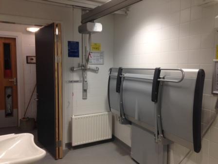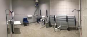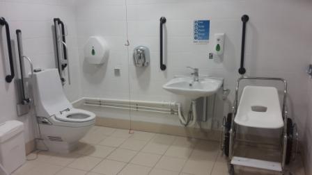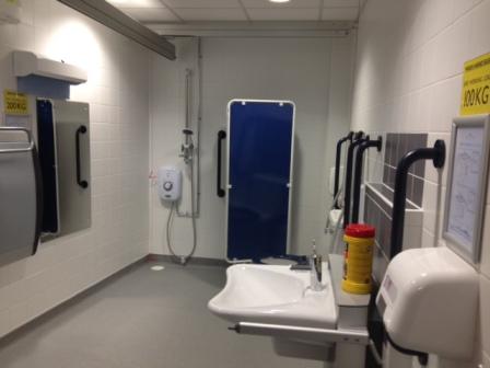 FACILITIES: Bench – Height Adjustable, Adult Sized, Wall Mounted | Hoist – Ceiling | Wash & Dry Toilet | Height Adjustable Washbasin | Non-Slip Floor | Floor Space (sq. m) – 12 | Emergency Alarm | Paper Roll | Managed Locked