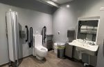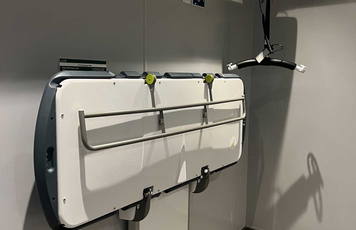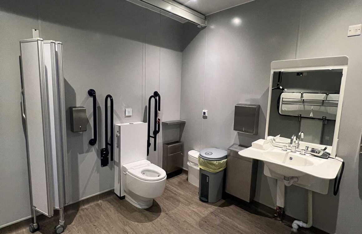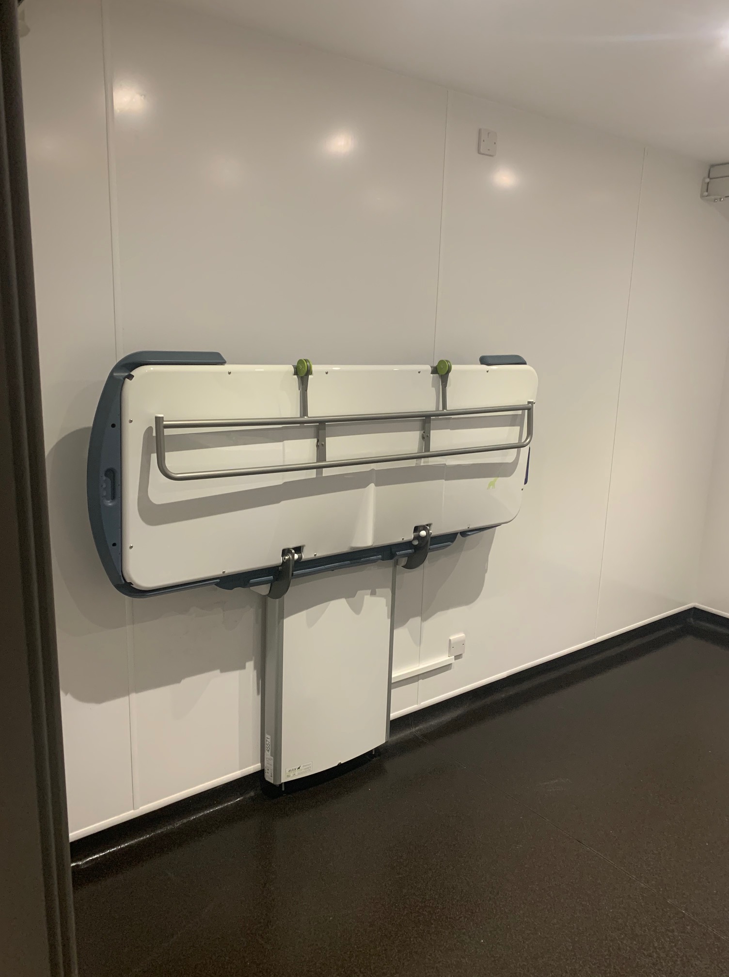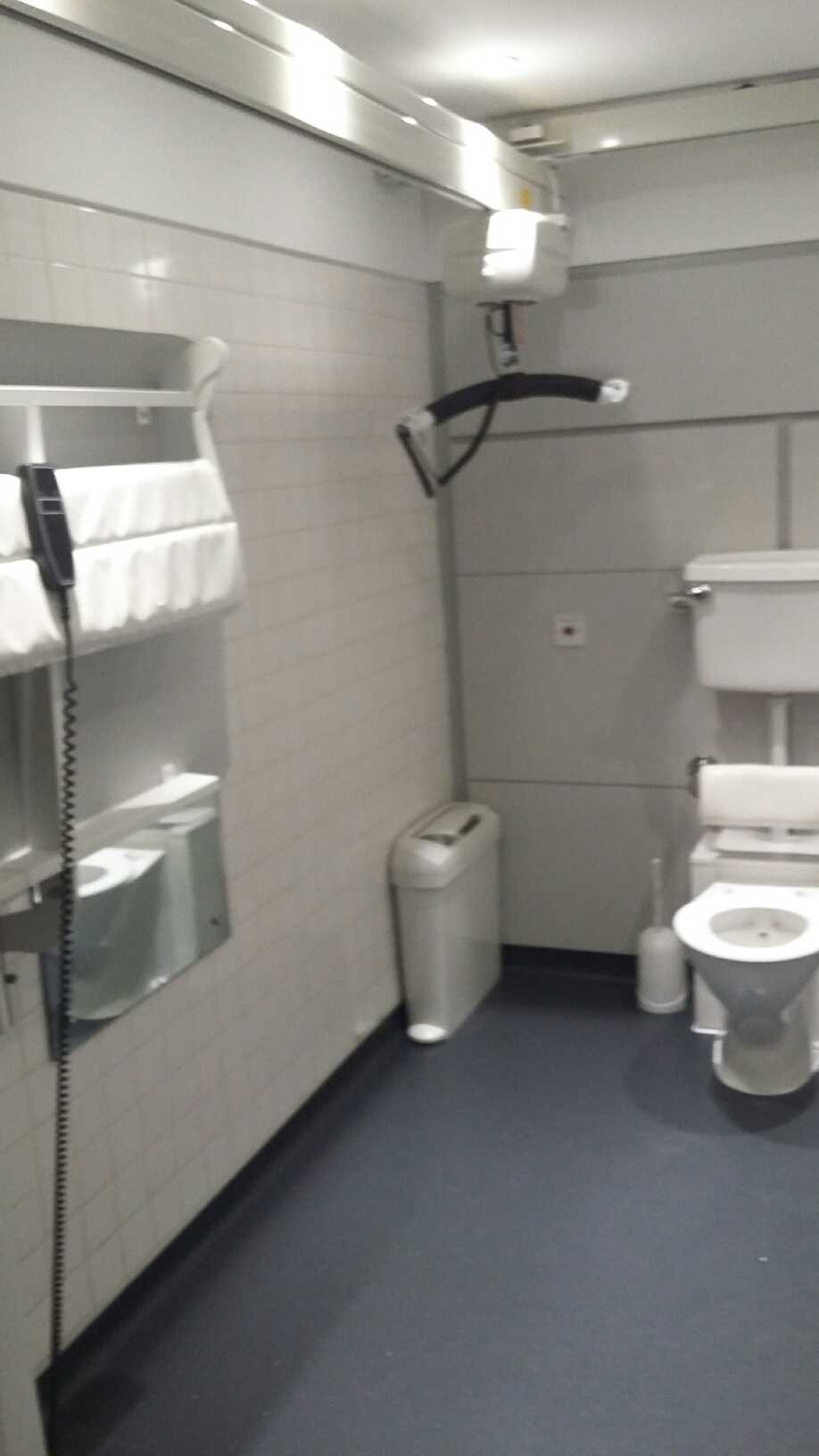 FACILITIES: Bench – Height Adjustable, Adult Sized, Free Standing | Hoist – Ceiling | Peninsular Toilet | Height Adjustable Washbasin | Non-Slip Floor | Floor Space (sq. m) – 10 | Emergency Alarm | Privacy Screen | Paper Roll Radar Key | Managed | Locked | Colostomy Shelf