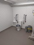 FACILITIES: Bench – Height Adjustable, Adult Sized, Wall Mounted | Hoist – Ceiling | Peninsular Toilet | Non-Slip Floor | Floor Space (sq. m) – 10 | Emergency Alarm | Privacy Screen | Paper Roll | Radar Key | Managed | Locked