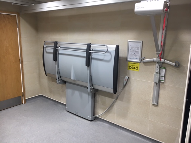 FACILITIES: Bench – Height Adjustable, Adult Sized, Free Standing | Hoist – Ceiling | Peninsular Toilet | Non-Slip Floor | Emergency Alarm | Managed