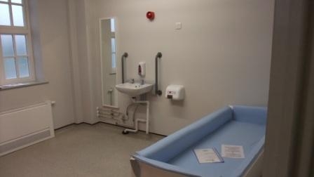 The changing facility is located in the Outpatients Department, it’s kept locked and the key can be obtained from the Outpatient Department reception.