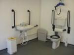 FACILITIES: Bench – Height Adjustable, Adult Sized, Free Standing | Hoist – Ceiling | Peninsular Toilet | Non-Slip Floor | Floor Space (sq. m) – 8 | Emergency Alarm | Privacy Screen | Paper Roll | Radar Key | Managed | Locked Colostomy Shelf