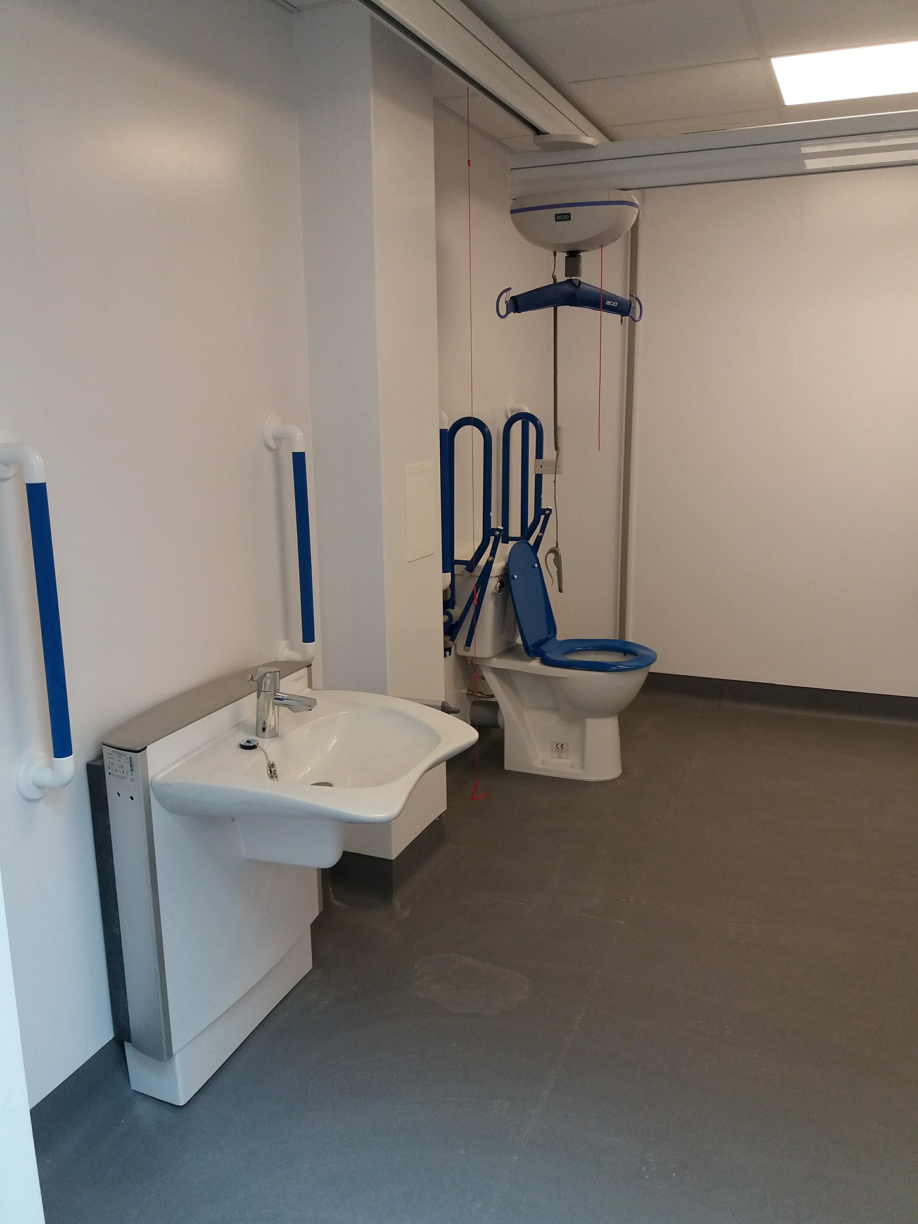 FACILITIES: Bench – Height Adjustable, Adult Sized, Free Standing | Hoist – Ceiling | Peninsular Toilet | Height Adjustable Washbasin | Non-Slip Floor | Floor Space (sq. m) – 12 | Emergency Alarm | Privacy Screen | Paper Roll Radar Key | Managed | Locked