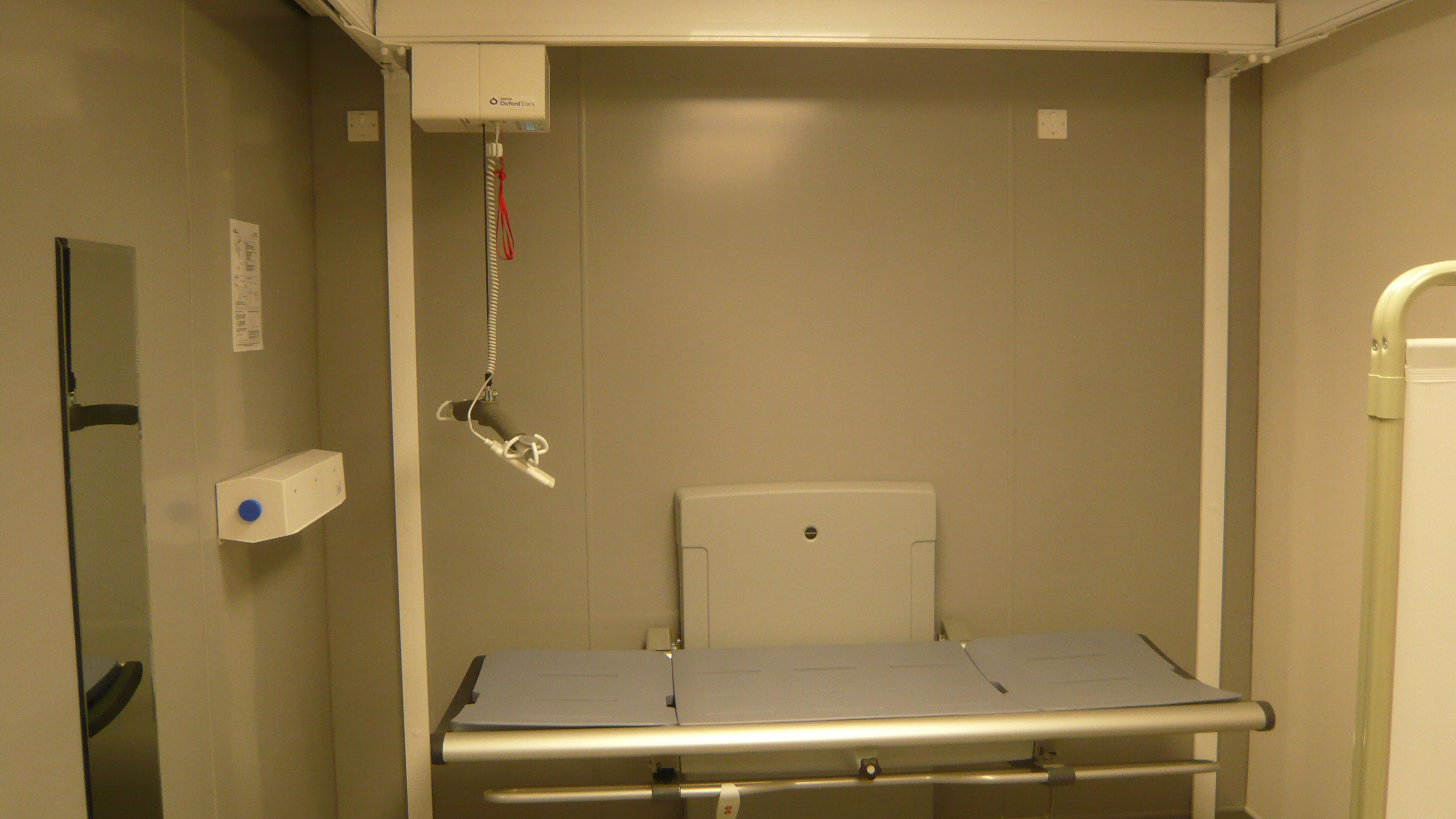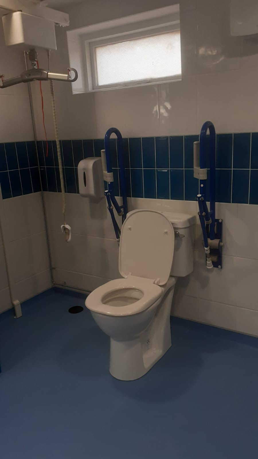 FACILITIES: Bench – Height Adjustable, Adult Sized, Free Standing | Hoist – Ceiling | Peninsular Toilet | Non-Slip Floor | Floor Space (sq. m) – 7.0 | Emergency Alarm | Privacy Screen | Paper Roll | Managed
