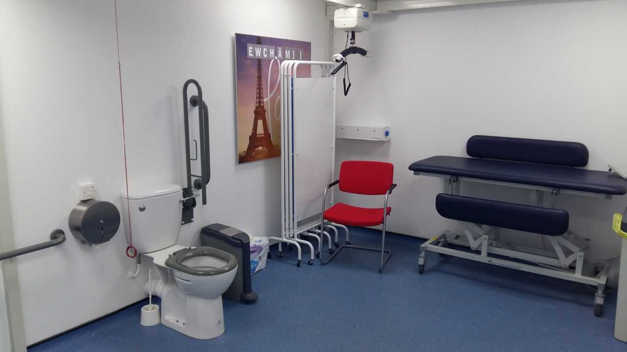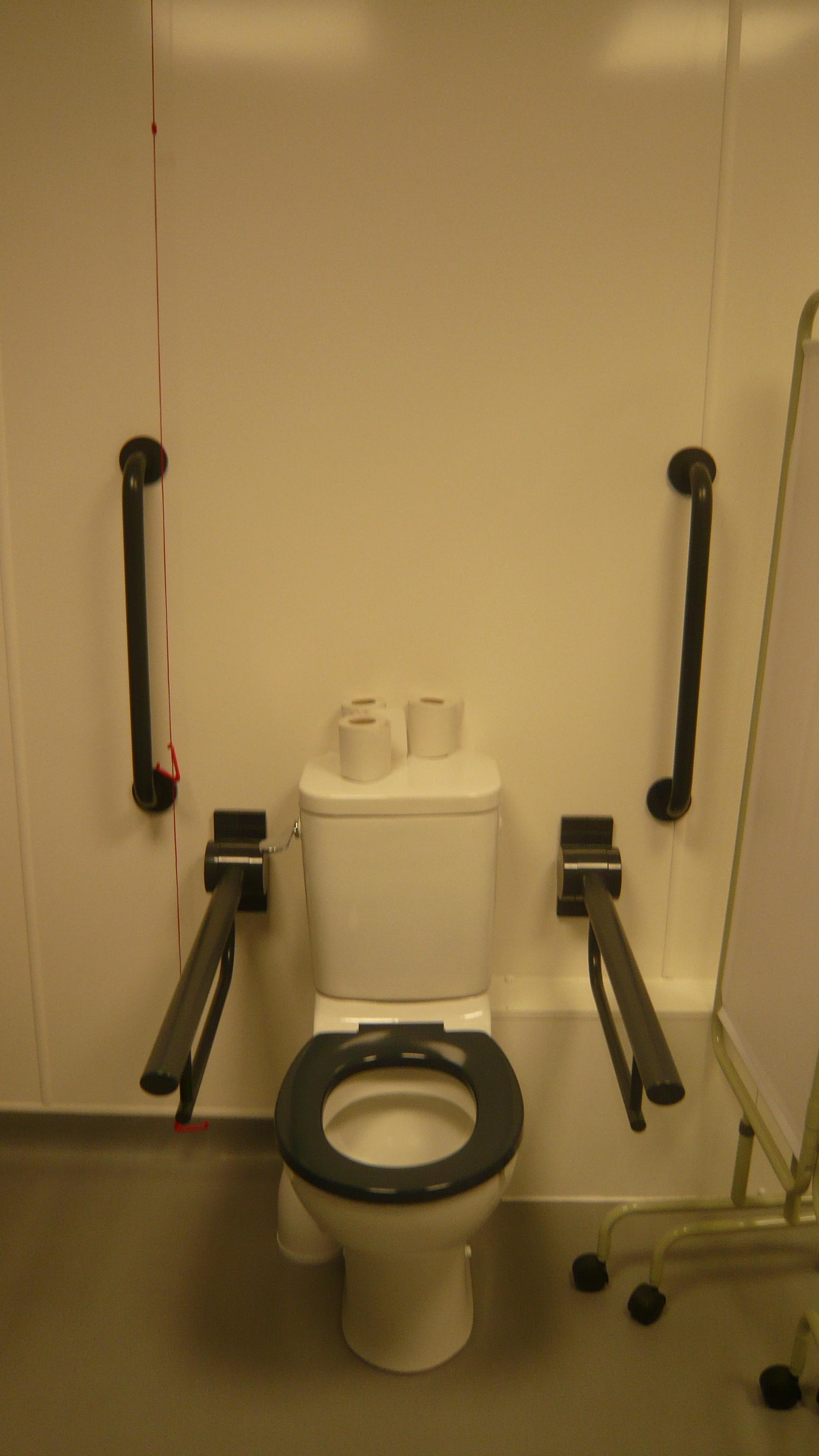 FACILITIES: Bench – Height Adjustable, Adult Sized, Free Standing | Hoist – Ceiling | Peninsular Toilet | Height Adjustable Washbasin | Non-Slip Floor | Floor Space (sq. m) – 12 | Emergency Alarm | Privacy Screen | Paper Roll Radar Key | Managed | Locked | Colostomy Shelf