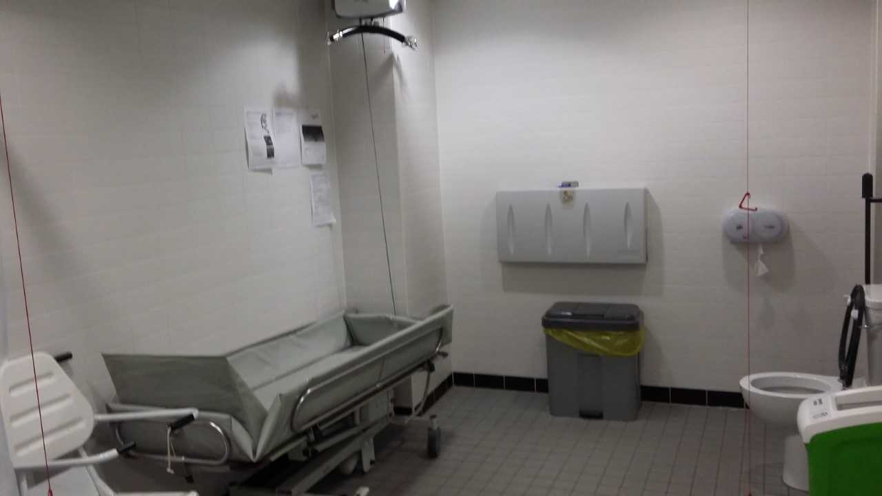 FACILITIES: Bench – Height Adjustable, Adult Sized, Free Standing | Hoist – Ceiling | Peninsular Toilet | Non-Slip Floor | Floor Space (sq. m) – 12 | Emergency Alarm | Privacy Screen | Paper Roll | Radar Key | Managed | Locked