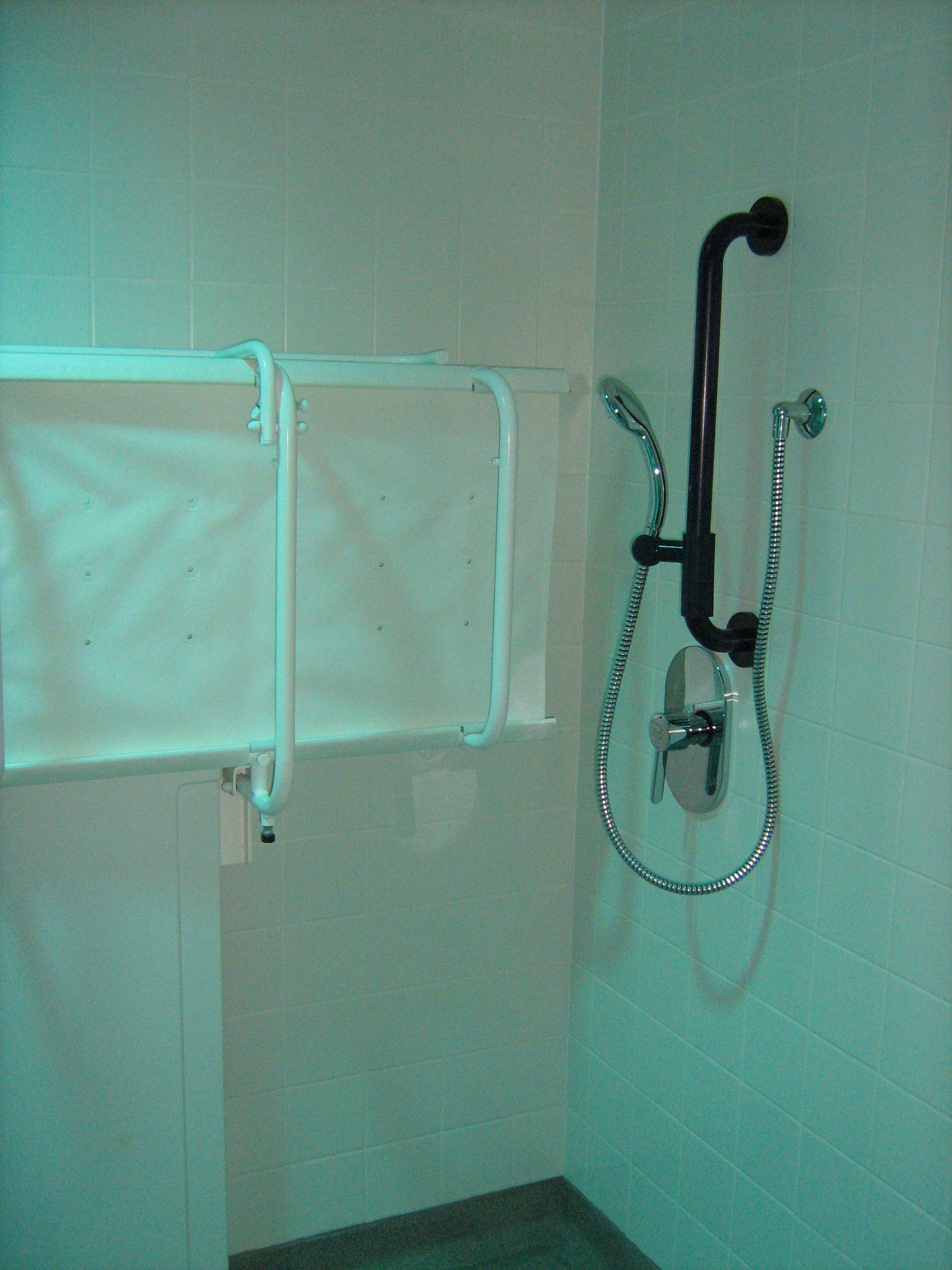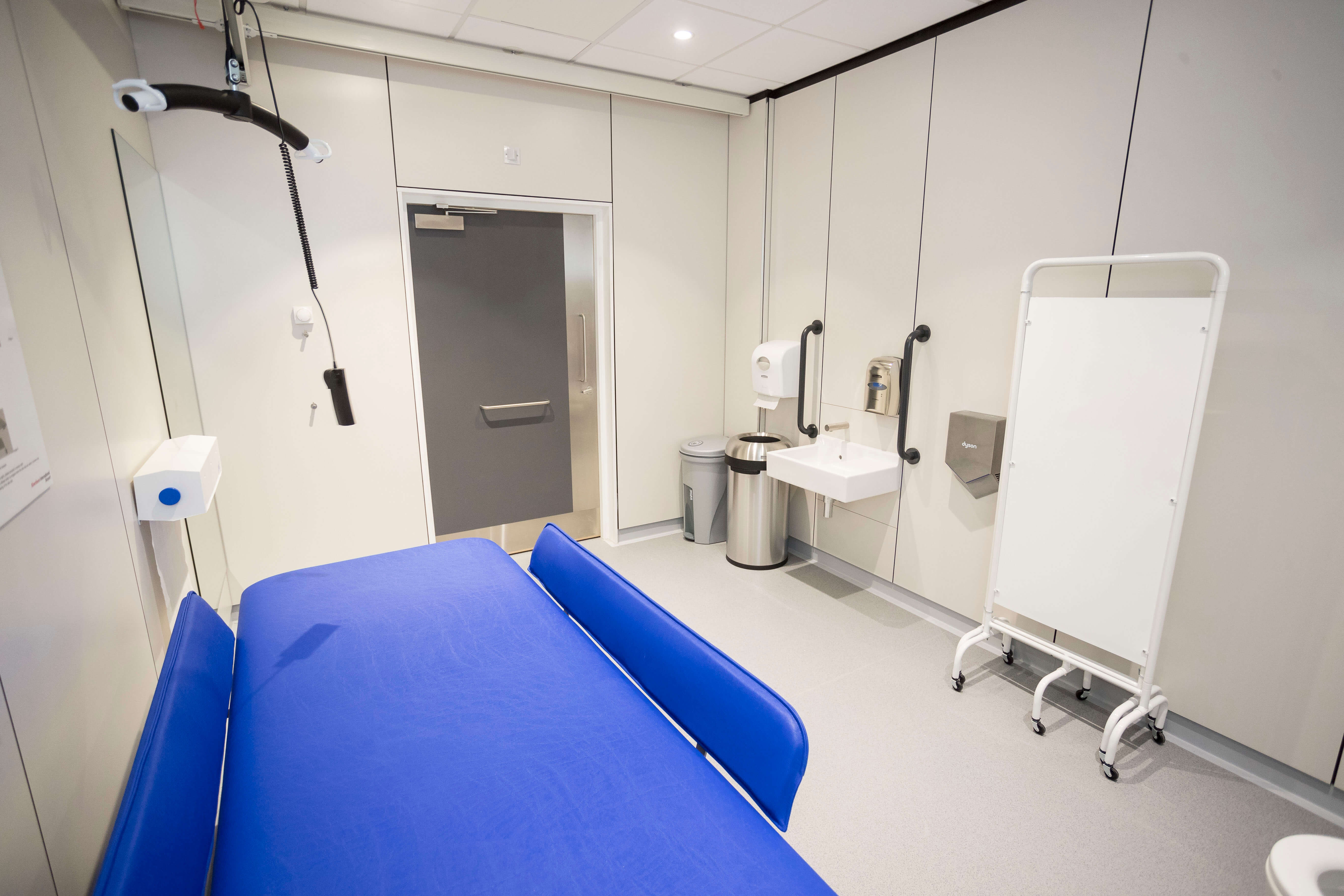 FACILITIES: Bench – Height Adjustable, Adult Sized, Free Standing | Hoist – Ceiling | Peninsular Toilet | Non-Slip Floor | Emergency Alarm | Privacy Screen | Paper Roll | Managed | Accessible Shower