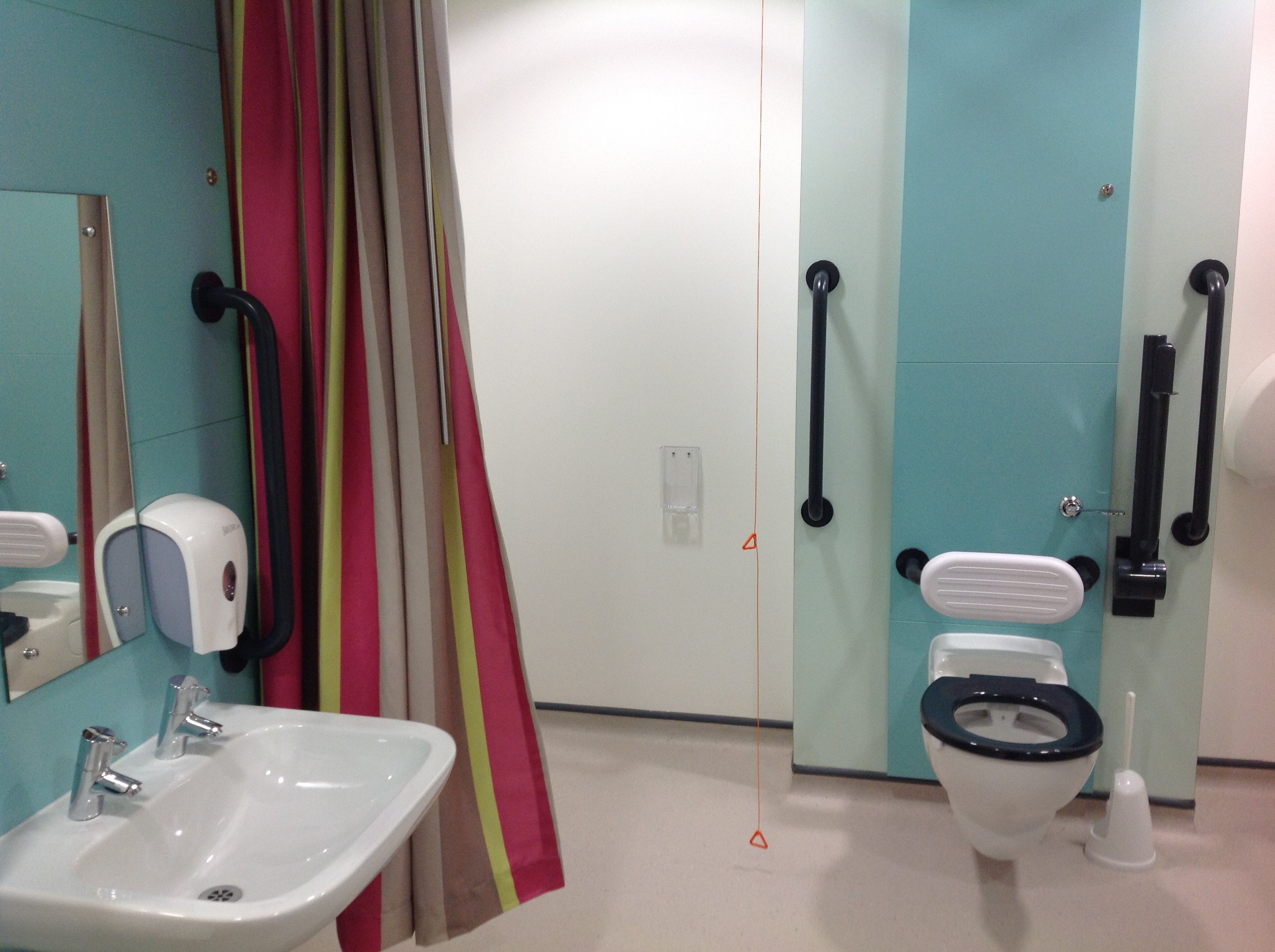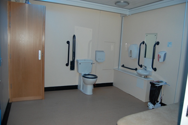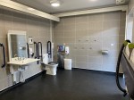 FACILITIES: Bench – Height Adjustable, Adult Sized, Free Standing | Hoist – Ceiling | Peninsular Toilet | Height Adjustable Washbasin | Non-Slip Floor | Floor Space (sq. m) – 10 | Emergency Alarm | Paper Roll | Radar Key Managed | Locked | Colostomy Shelf